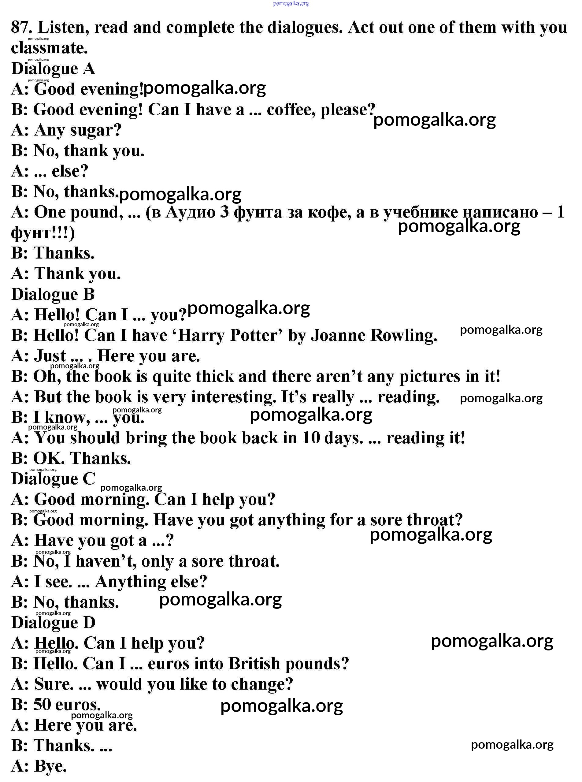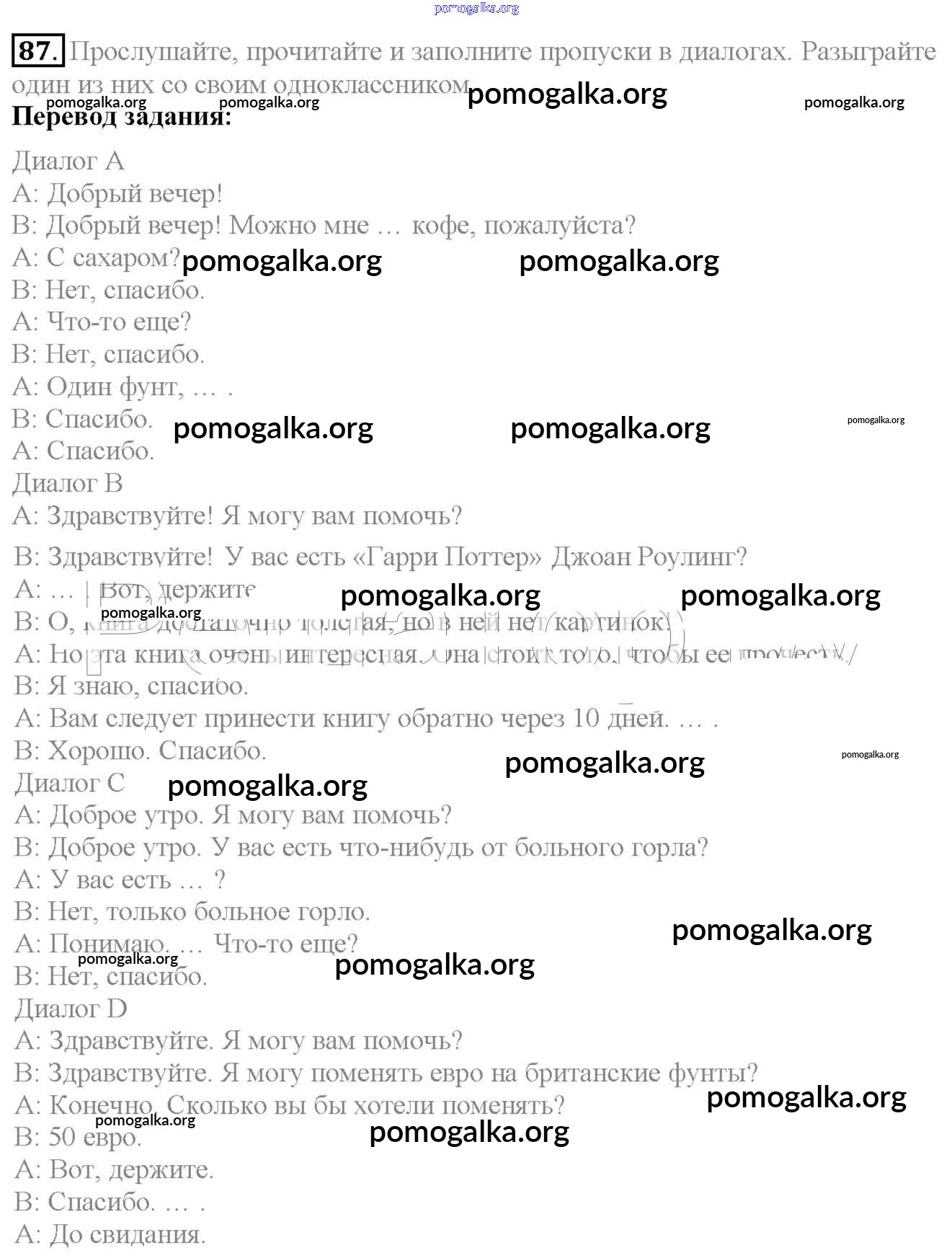 Готовые ответы - Английский язык 6 класс Enjoy English Биболетова М.З. - exercise unit 1 87