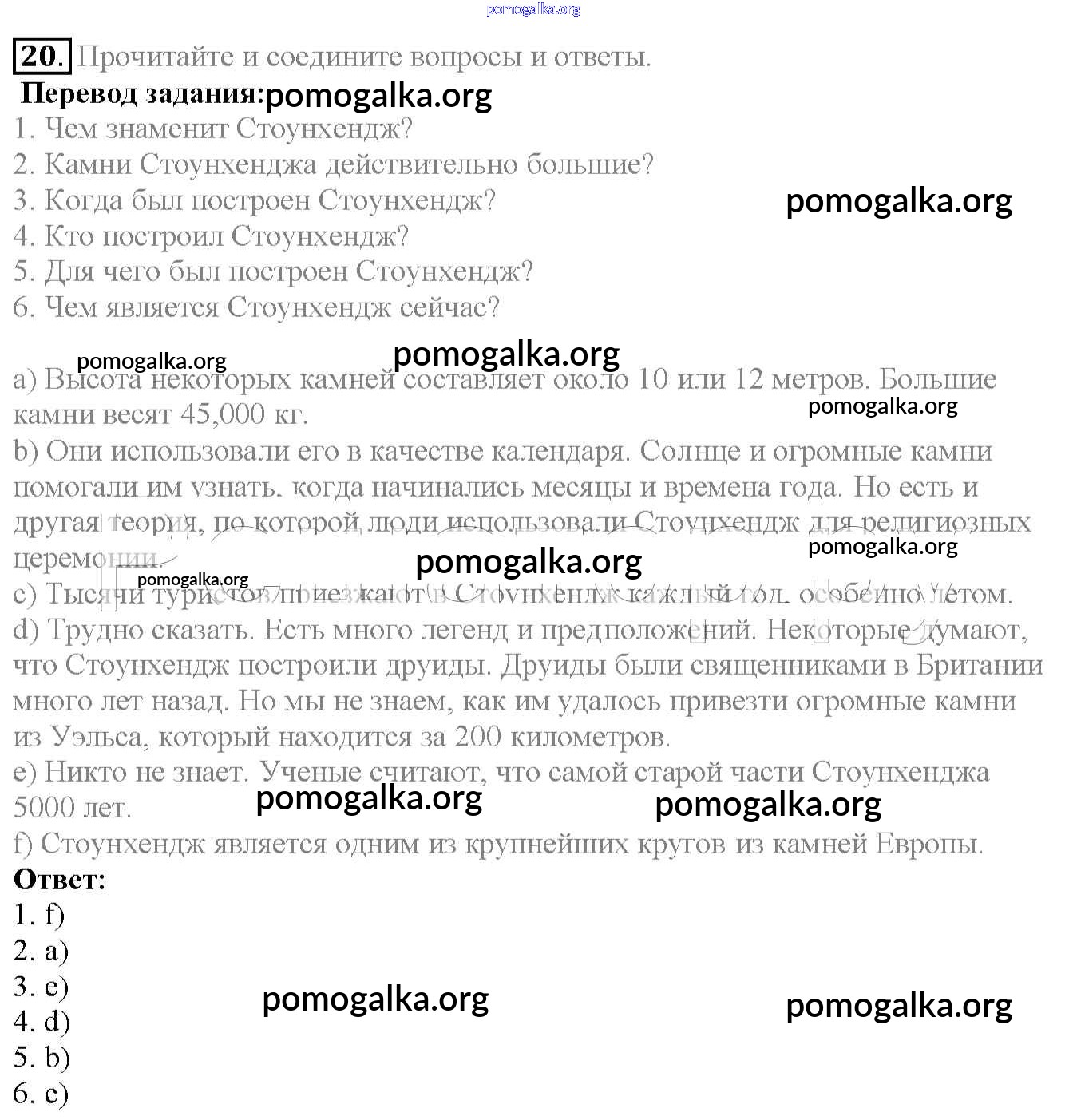 Готовые ответы - Английский язык 6 класс Enjoy English Биболетова М.З. - exercise unit 2 20