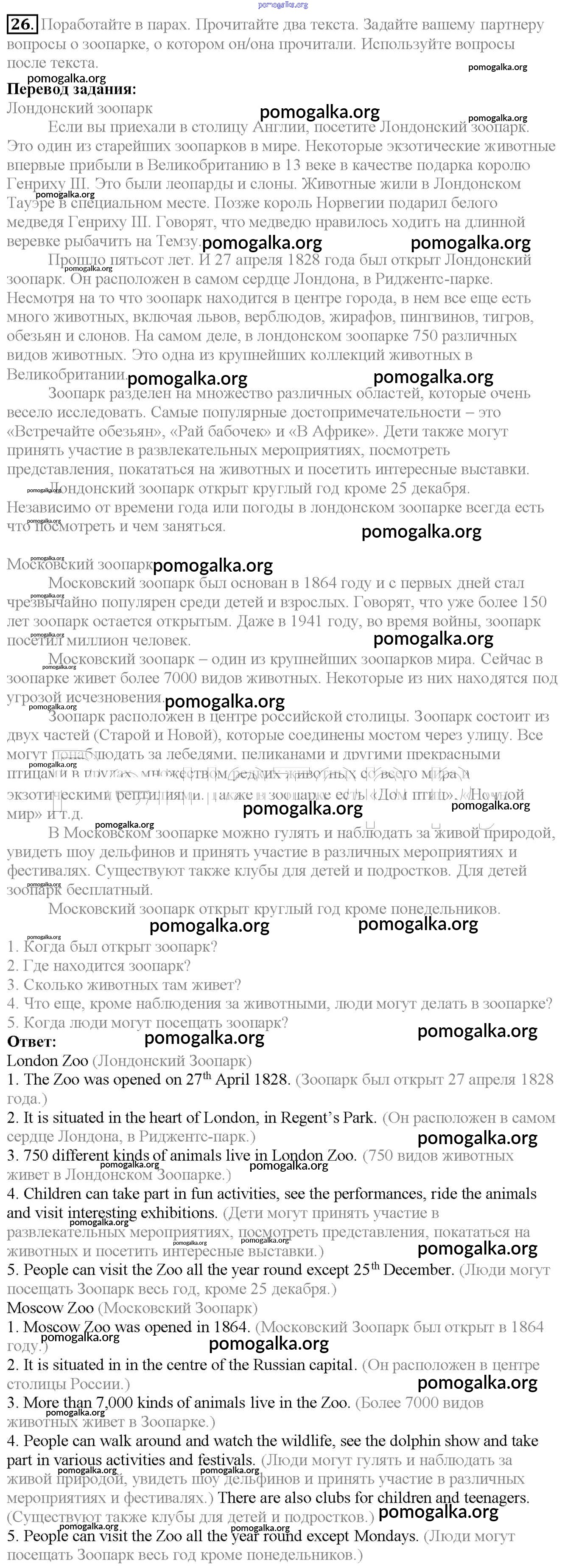 Готовые ответы - Английский язык 6 класс Enjoy English Биболетова М.З. - exercise unit 2 26