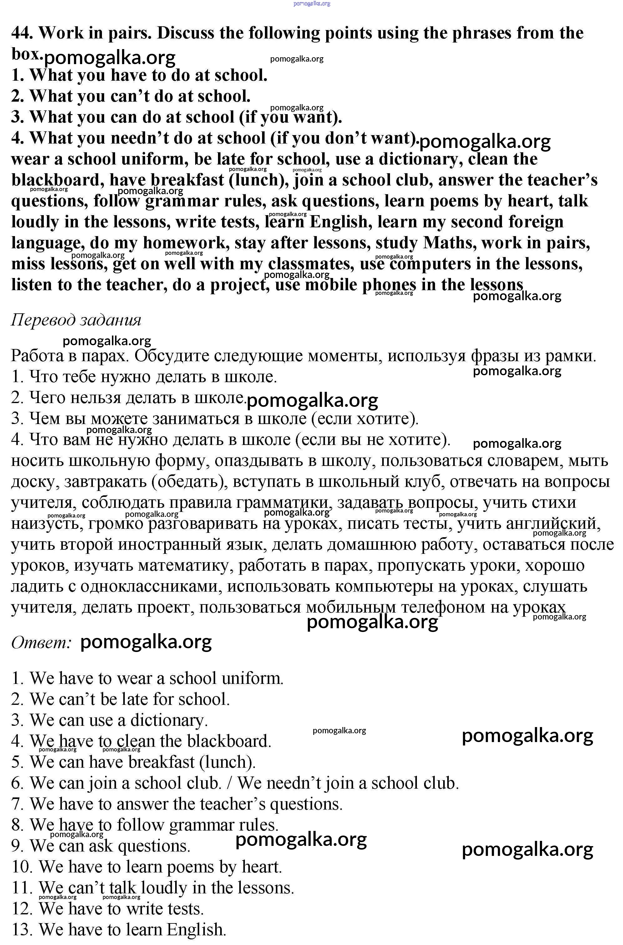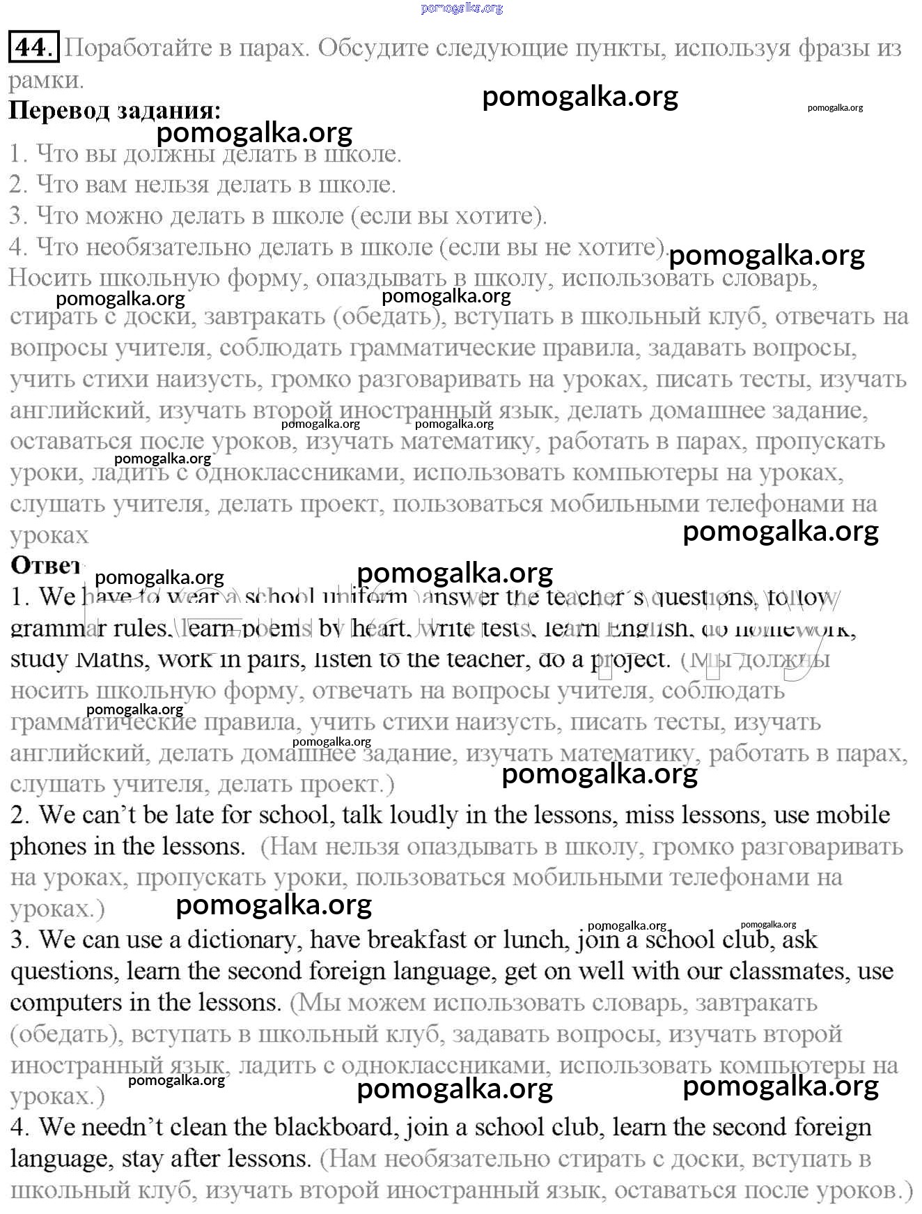 Готовые ответы - Английский язык 6 класс Enjoy English Биболетова М.З. - exercise unit 2 44