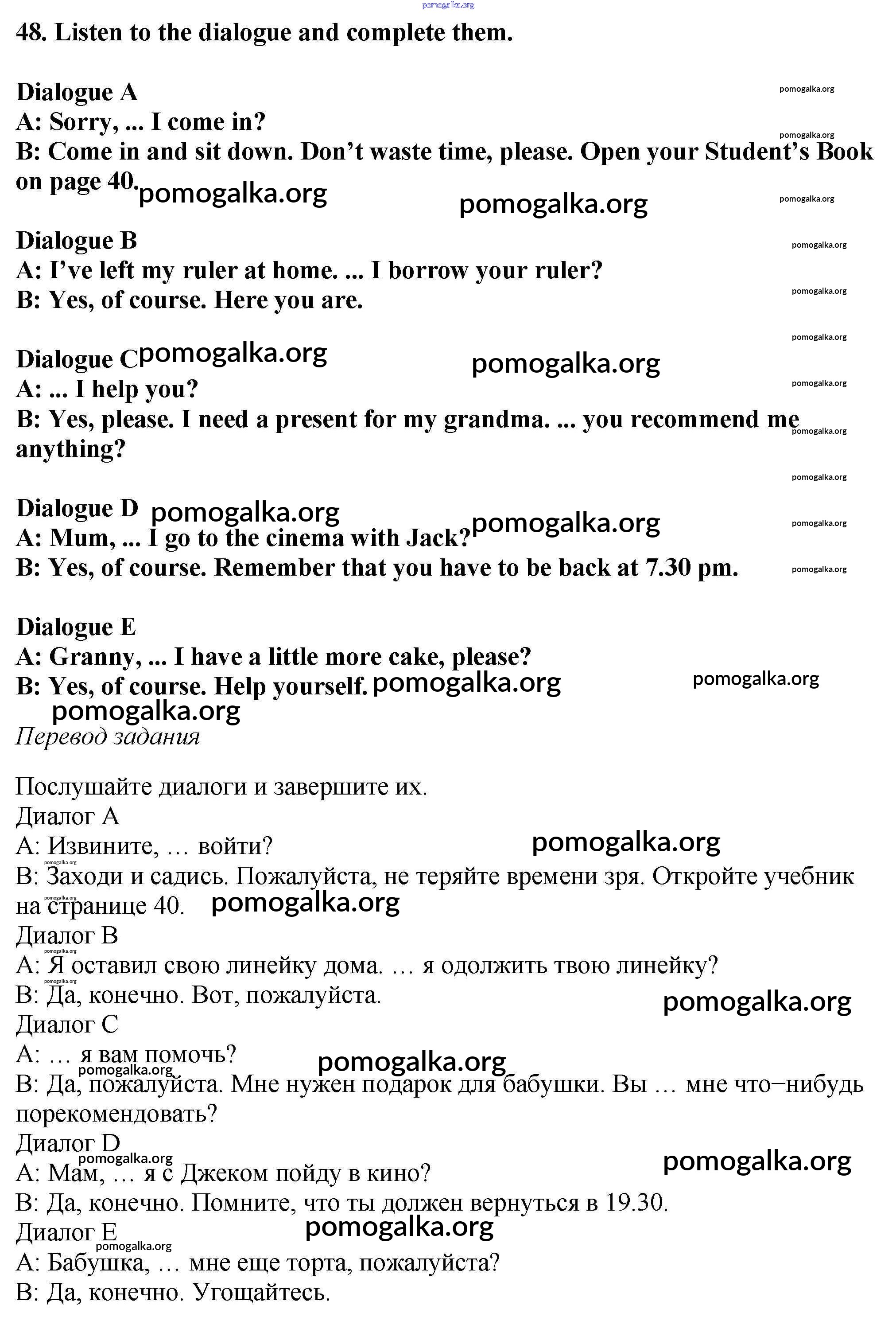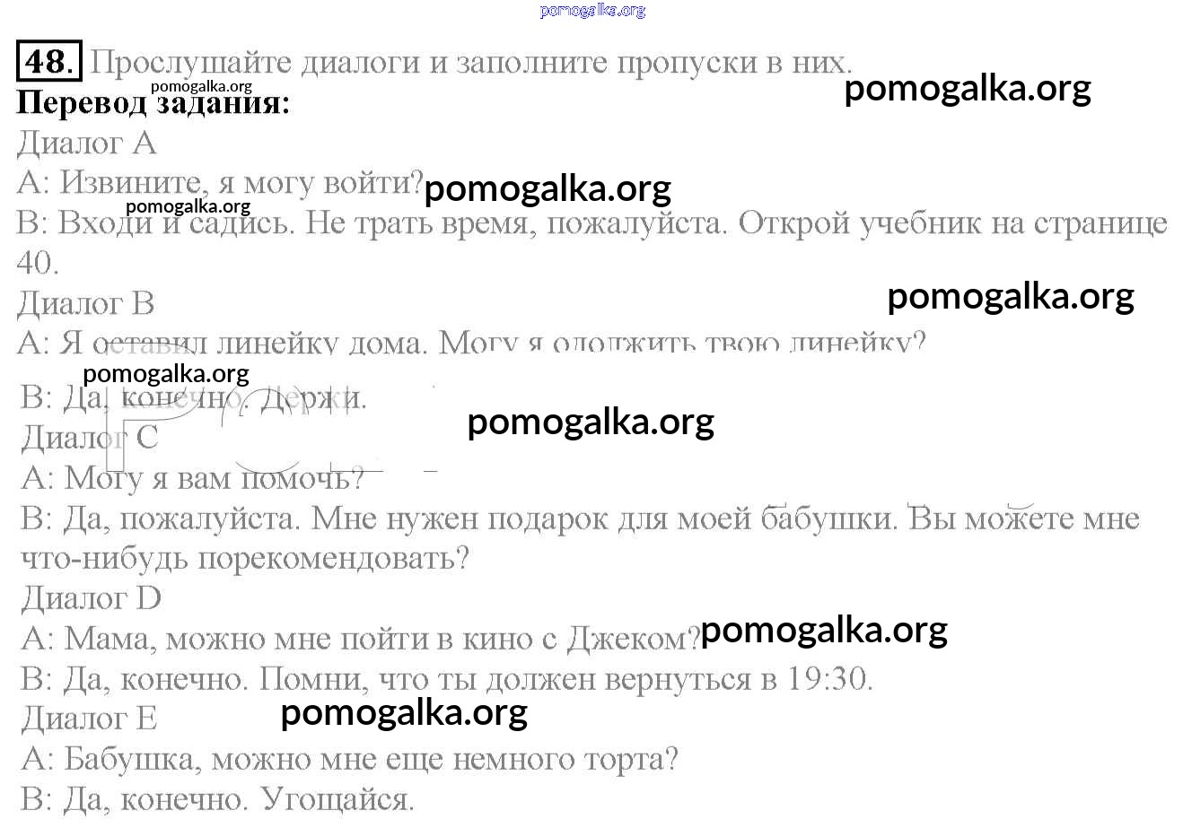 Готовые ответы - Английский язык 6 класс Enjoy English Биболетова М.З. - exercise unit 2 48