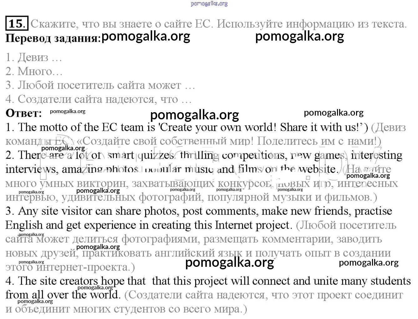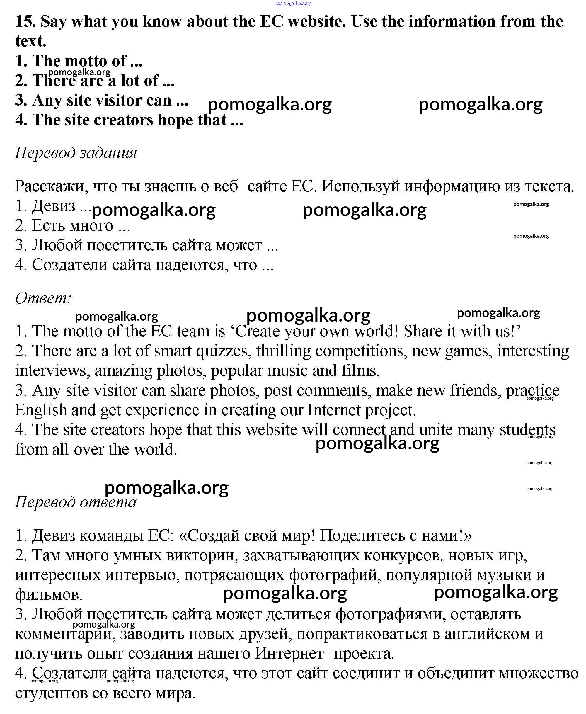 Готовые ответы - Английский язык 6 класс Enjoy English Биболетова М.З. - exercise unit 3 15