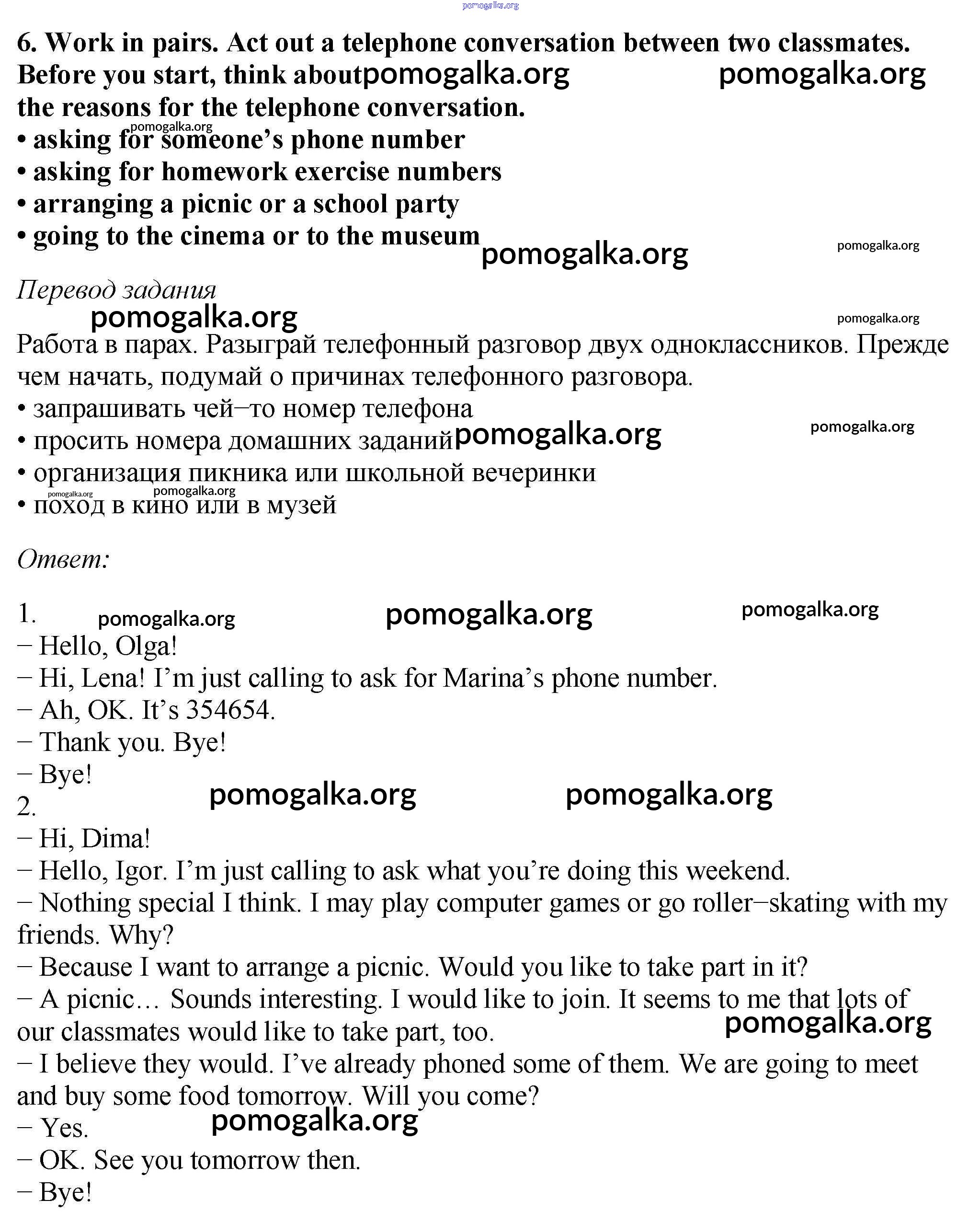 Готовые ответы - Английский язык 6 класс Enjoy English Биболетова М.З. - exercise unit 3 6