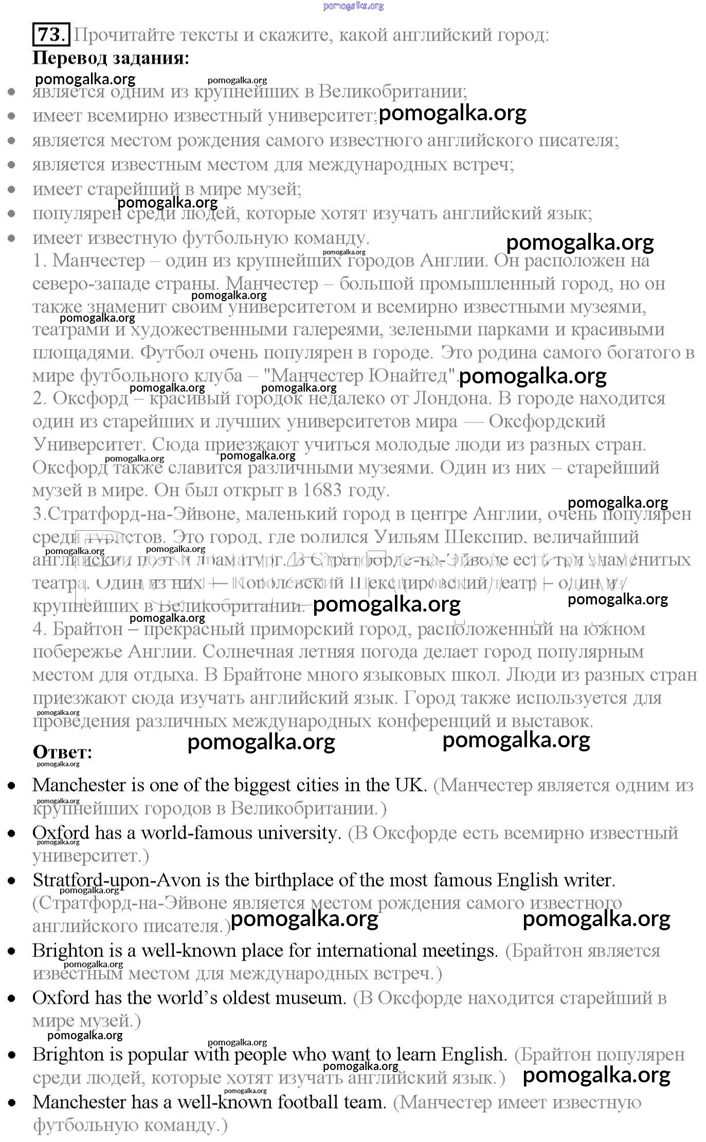 Готовые ответы - Английский язык 6 класс Enjoy English Биболетова М.З. - exercise unit 3 73