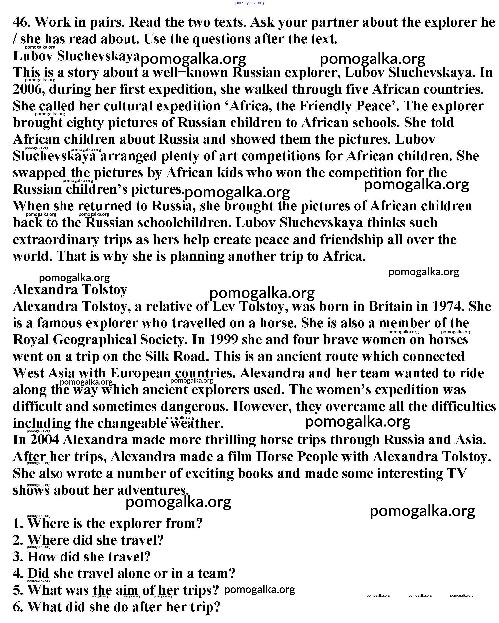Готовые ответы - Английский язык 6 класс Enjoy English Биболетова М.З. - exercise unit 4 46