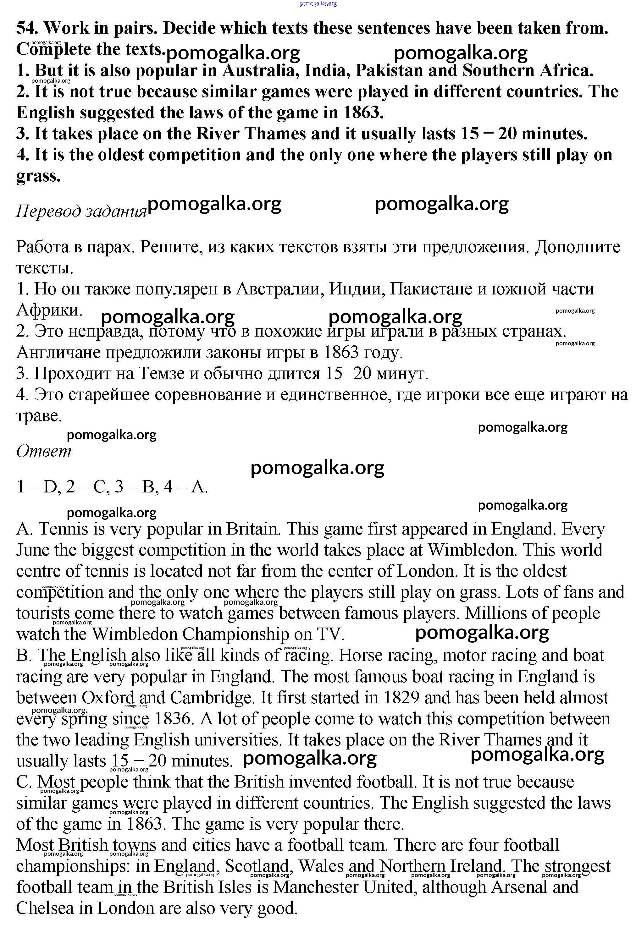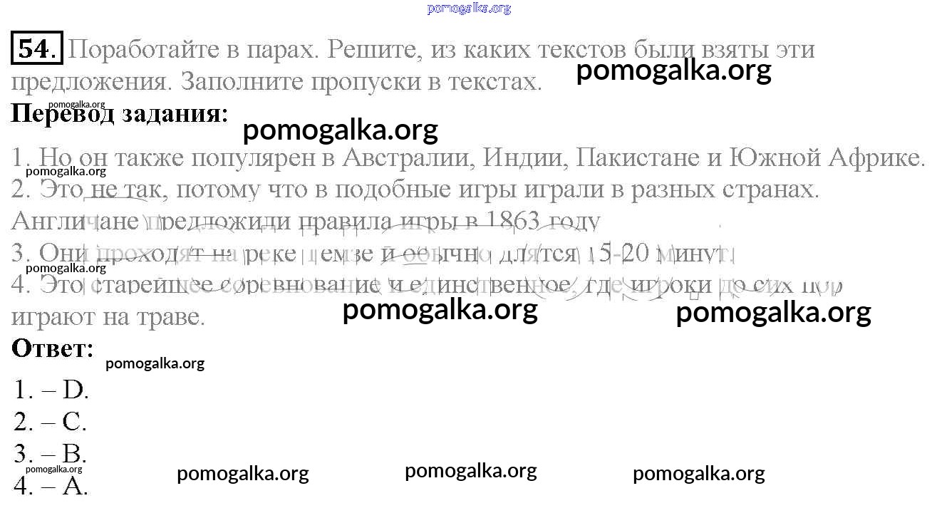 Готовые ответы - Английский язык 6 класс Enjoy English Биболетова М.З. - exercise unit 4 54