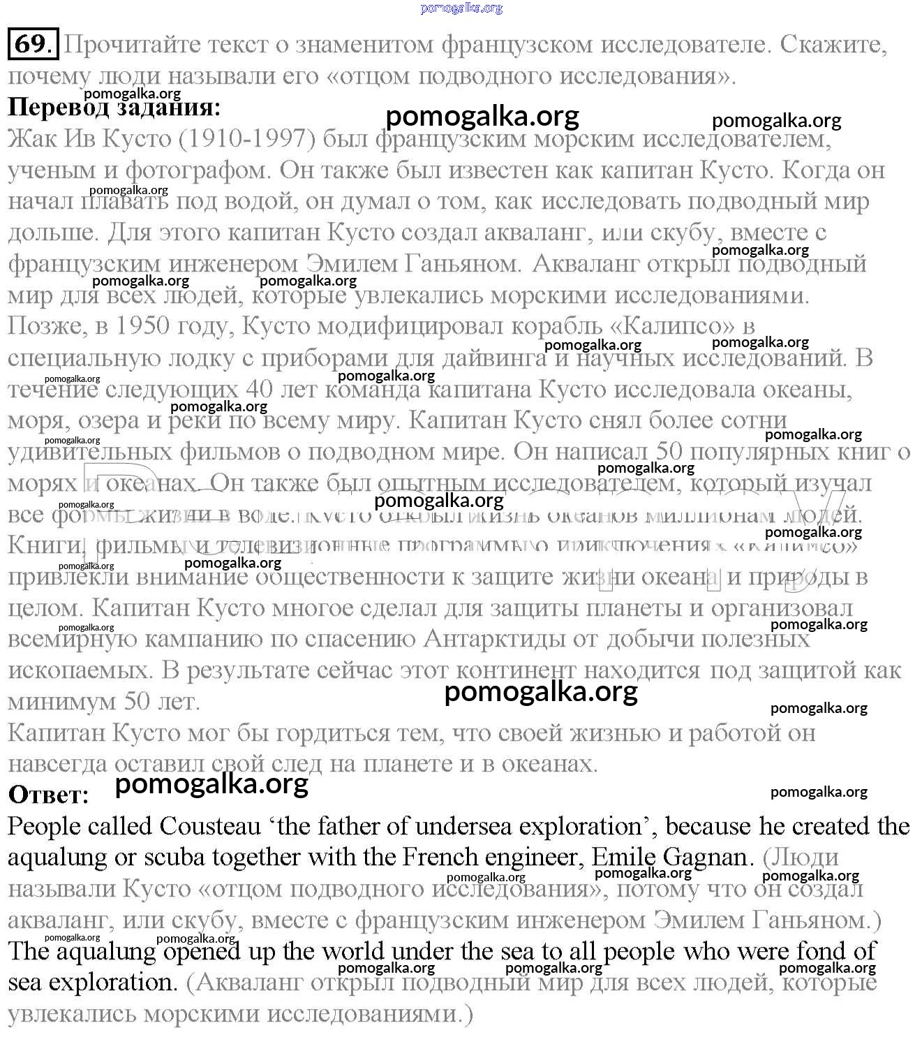 Готовые ответы - Английский язык 6 класс Enjoy English Биболетова М.З. - exercise unit 4 69