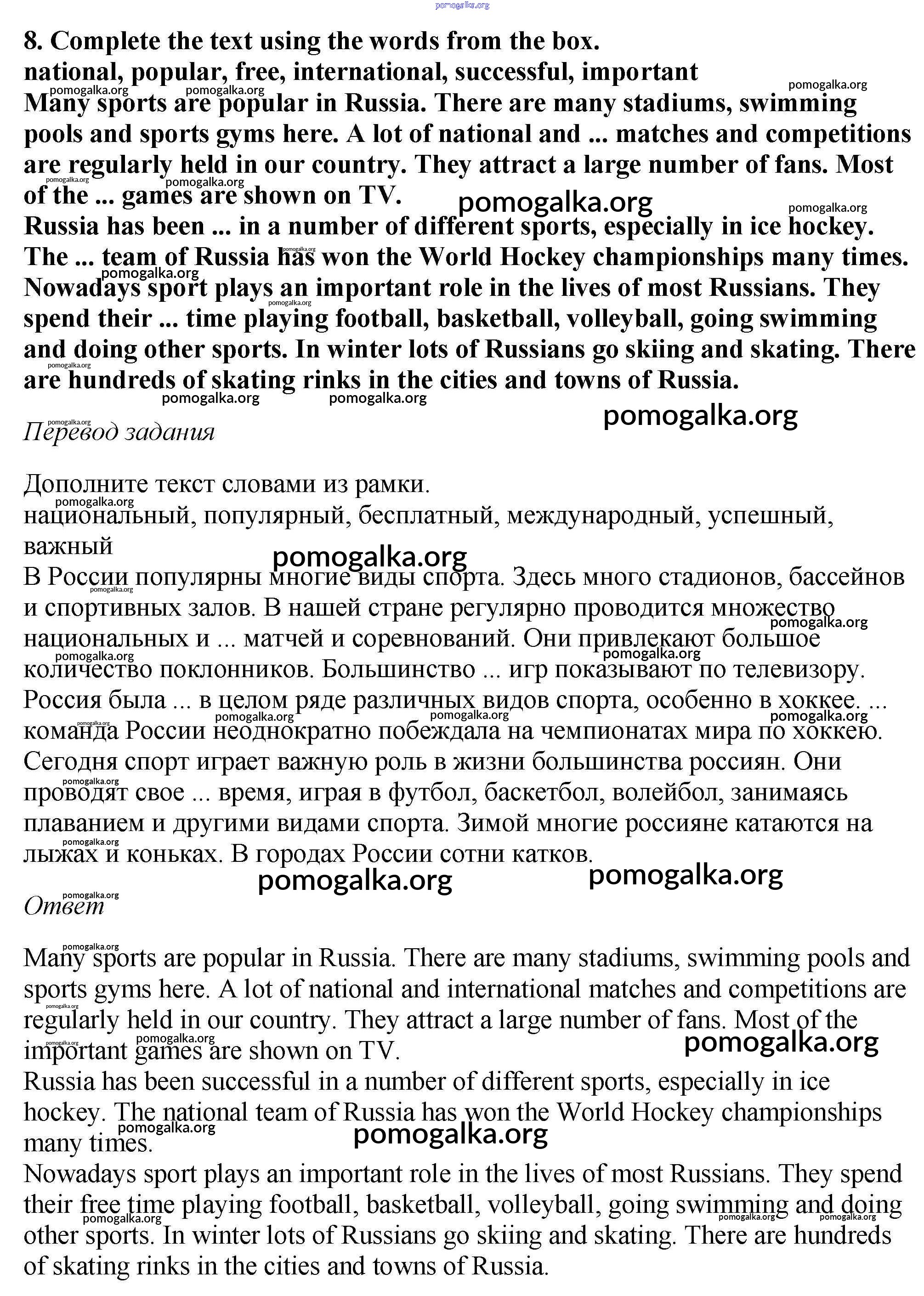 Готовые ответы - Английский язык 6 класс Enjoy English Биболетова М.З. - homework unit 4 8
