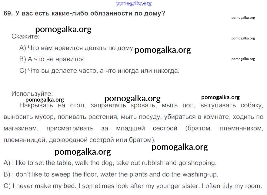 Готовые ответы - Английский язык 6 класс Enjoy English Биболетова М.З. - exercise unit 1 69
