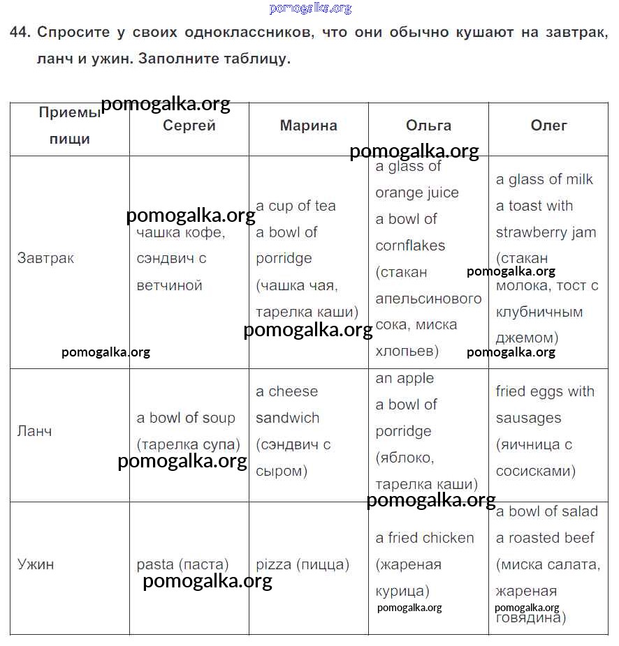 Готовые ответы - Английский язык 6 класс Enjoy English Биболетова М.З. - exercise unit 2 44