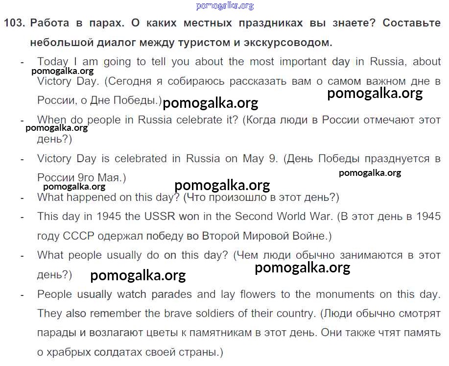 Готовые ответы - Английский язык 6 класс Enjoy English Биболетова М.З. - exercise unit 4 103