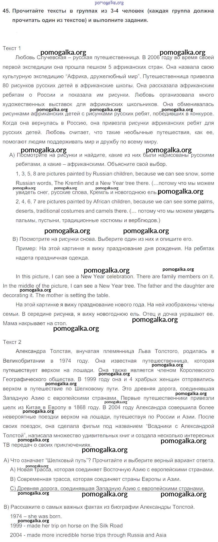 Готовые ответы - Английский язык 6 класс Enjoy English Биболетова М.З. - exercise unit 4 45
