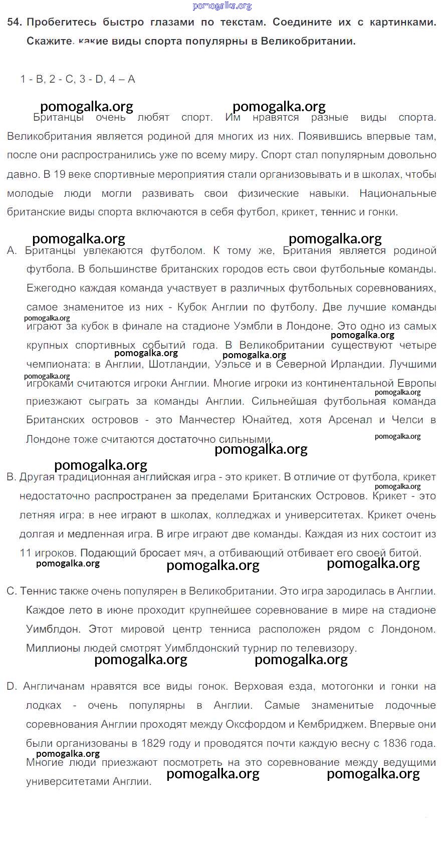Готовые ответы - Английский язык 6 класс Enjoy English Биболетова М.З. - exercise unit 4 54