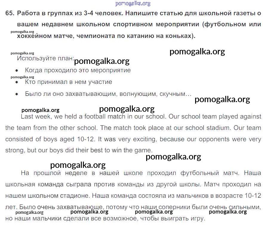 Готовые ответы - Английский язык 6 класс Enjoy English Биболетова М.З. - exercise unit 4 65