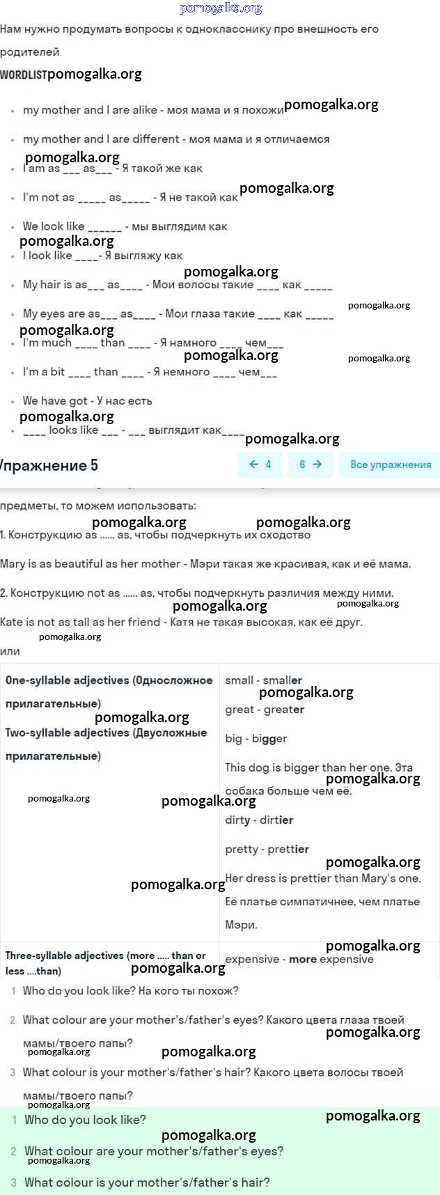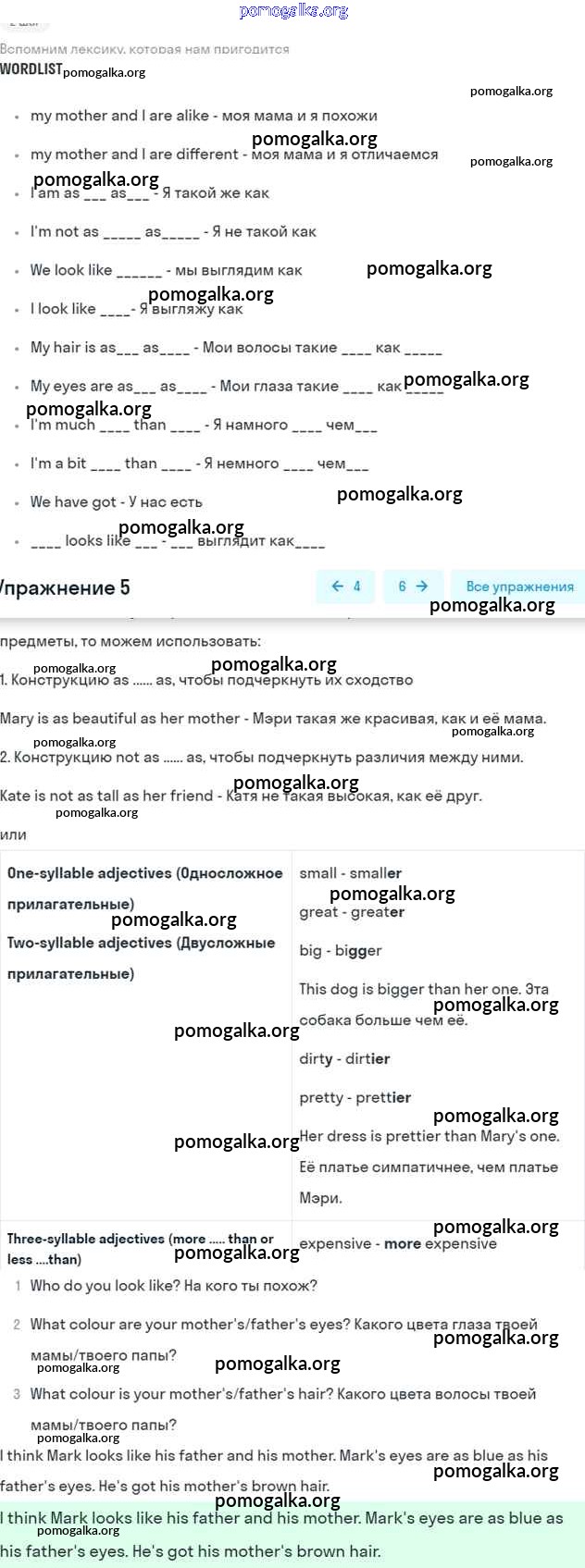 Готовые ответы - Английский язык 6 класс Кузовлёв В.П. - lesson 2 unit 1 5