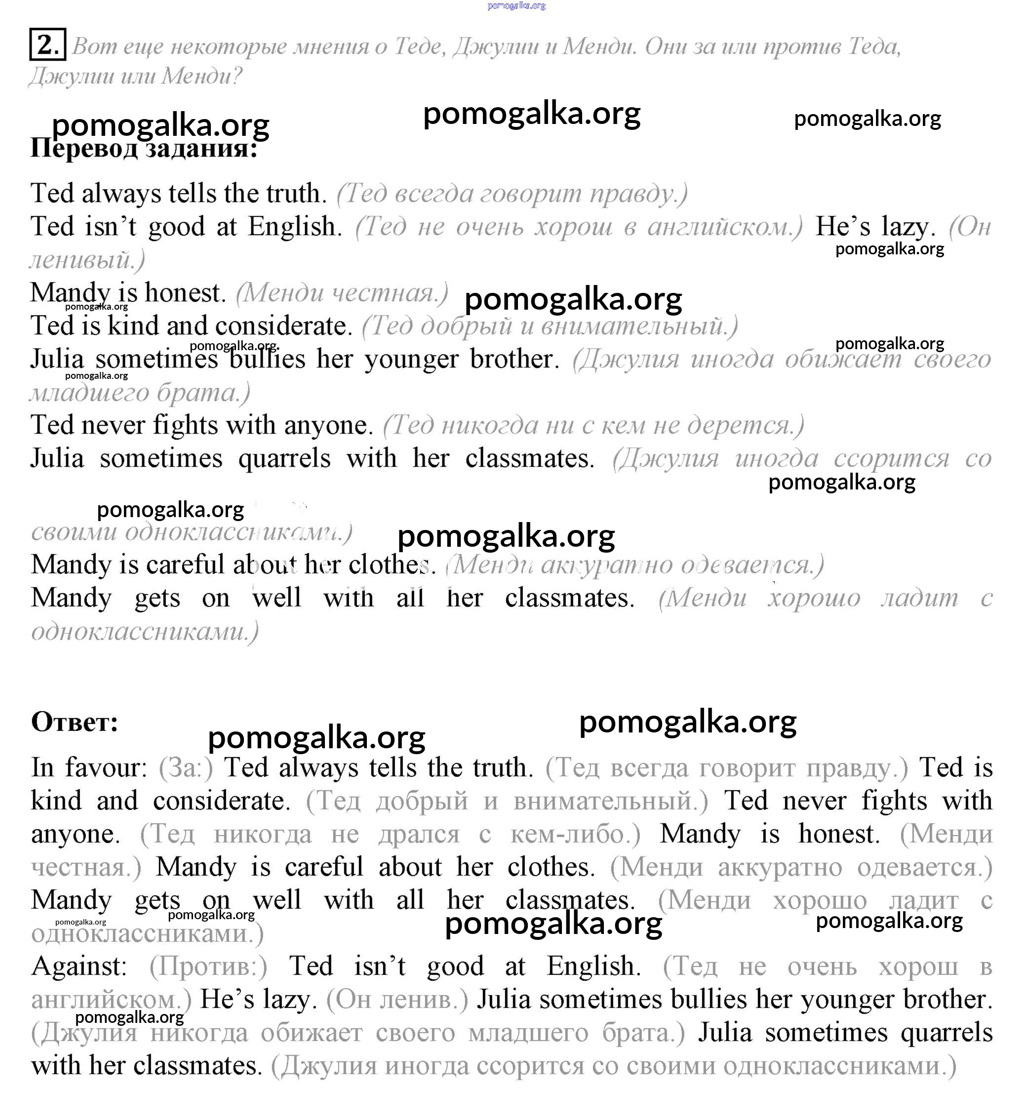Готовые ответы - Английский язык 6 класс Кузовлёв В.П. - lesson 5 unit 2 2