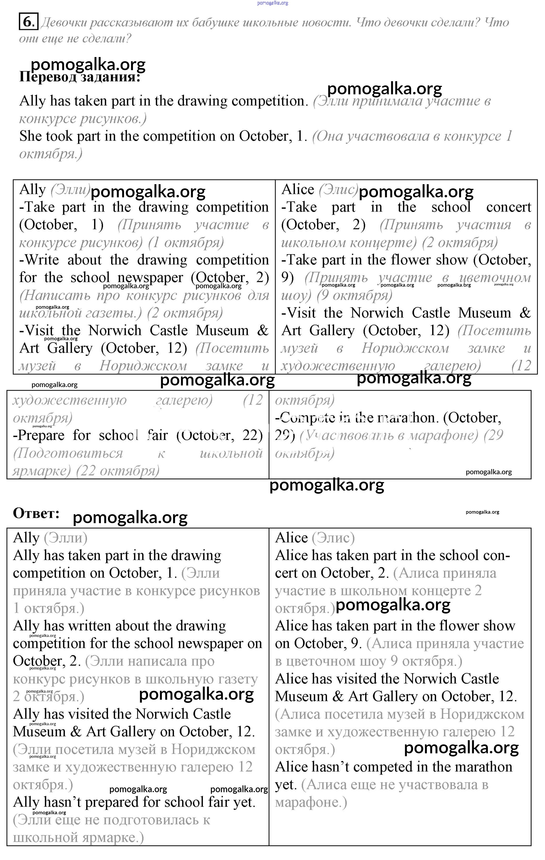 Готовые ответы - Английский язык 6 класс Кузовлёв В.П. - lesson 3-4 unit 3 6