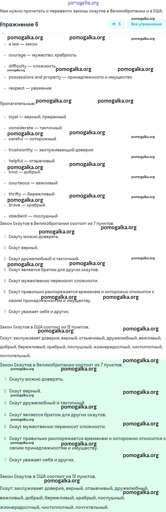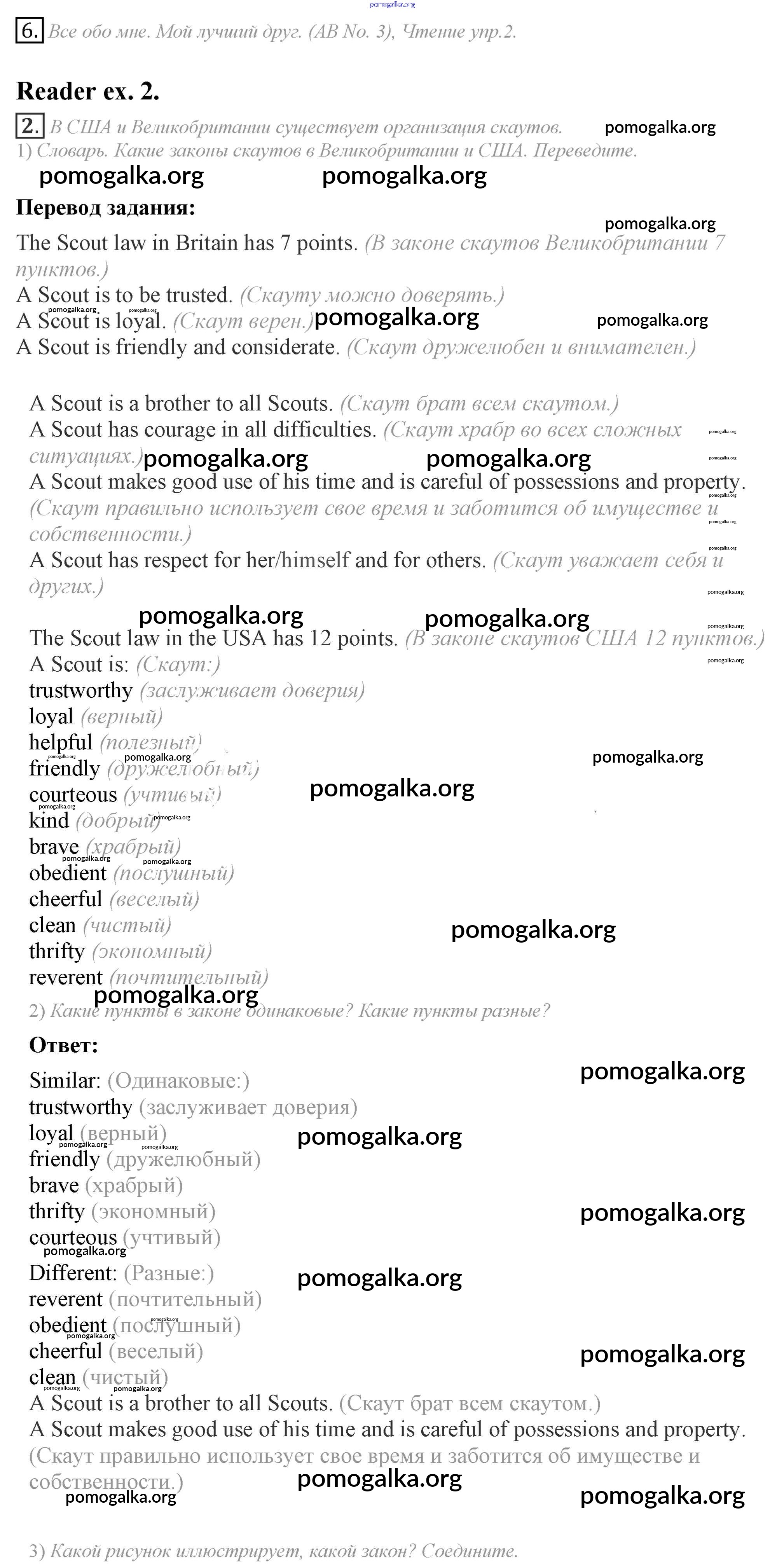 Готовые ответы - Английский язык 6 класс Кузовлёв В.П. - lesson 2 unit 2 6
