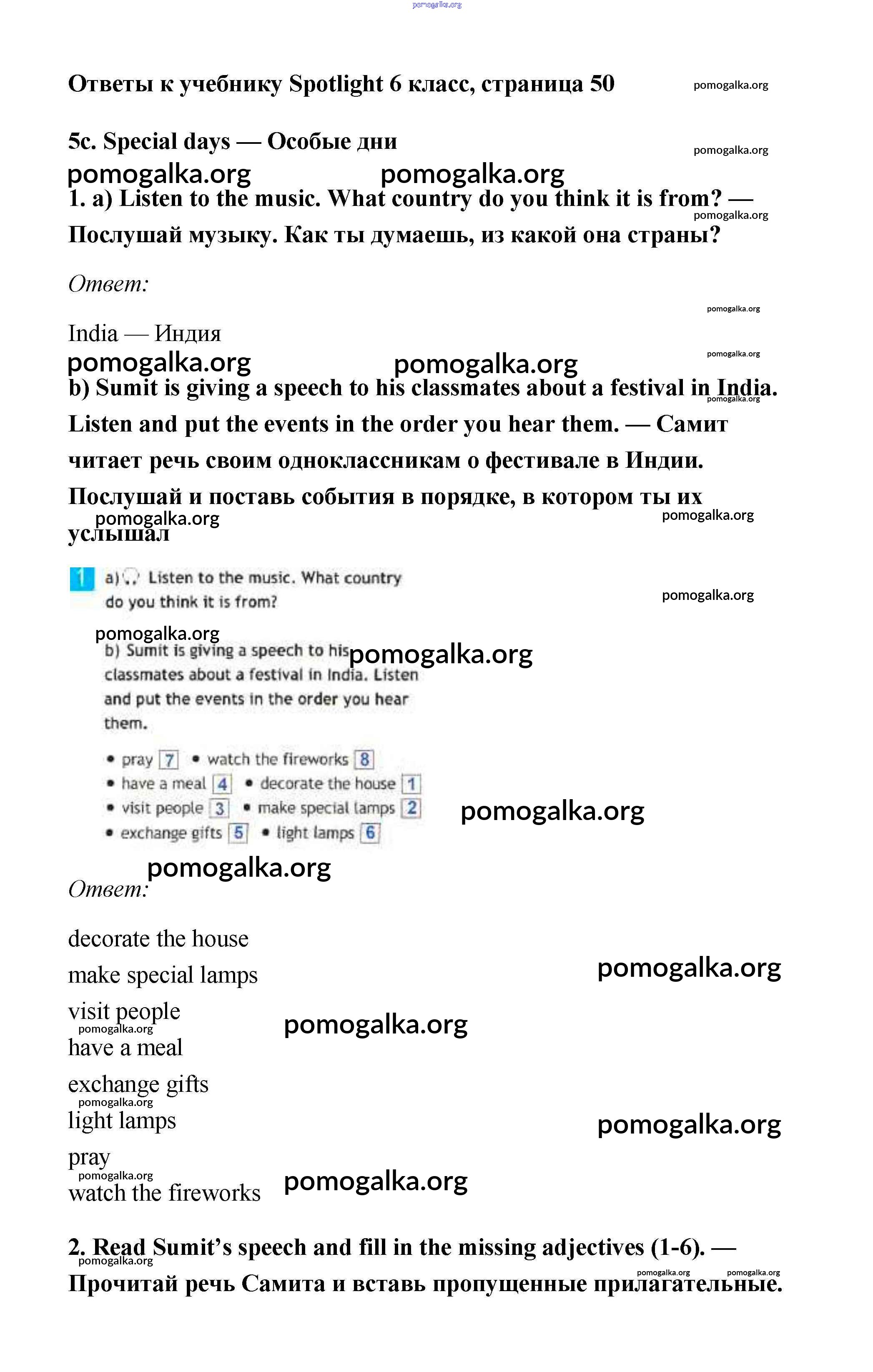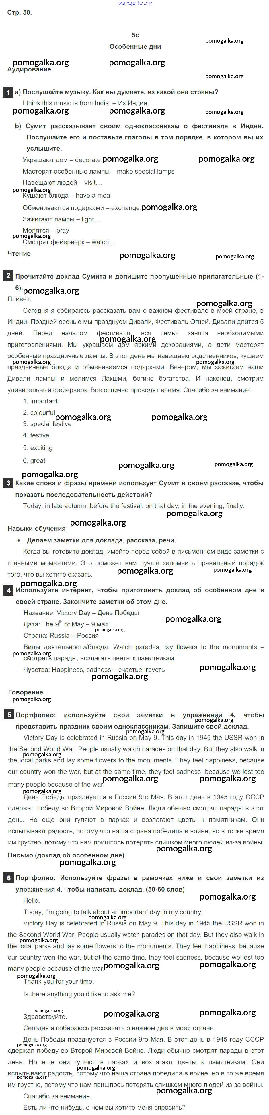 Готовые ответы - Английский язык 6 класс Spotlight Ваулина Е. - module 5. страница 50