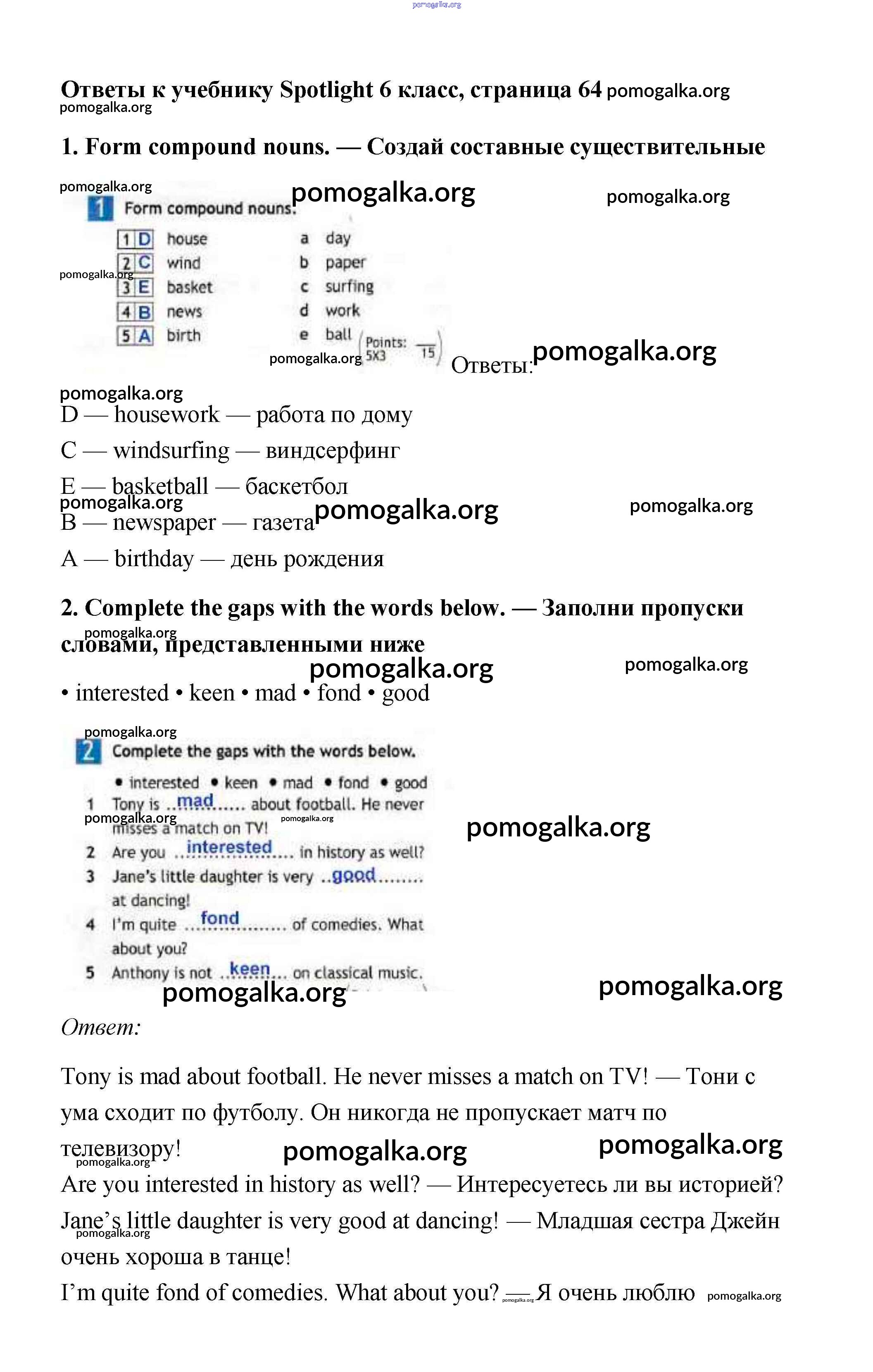 Готовые ответы - Английский язык 6 класс Spotlight Ваулина Е. - module 6. страница 64