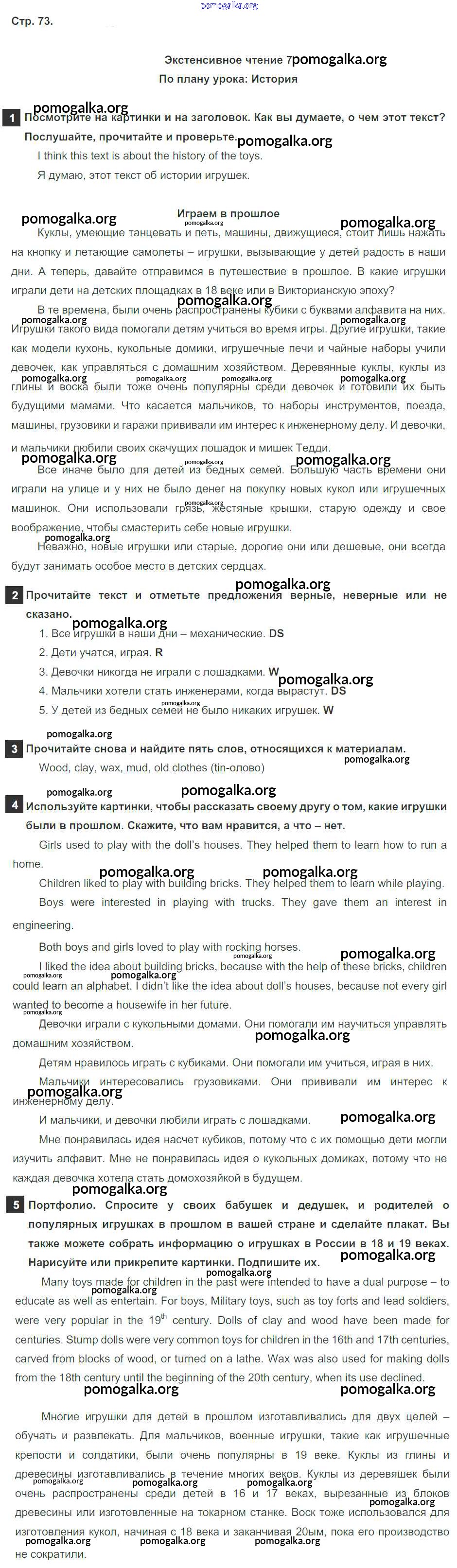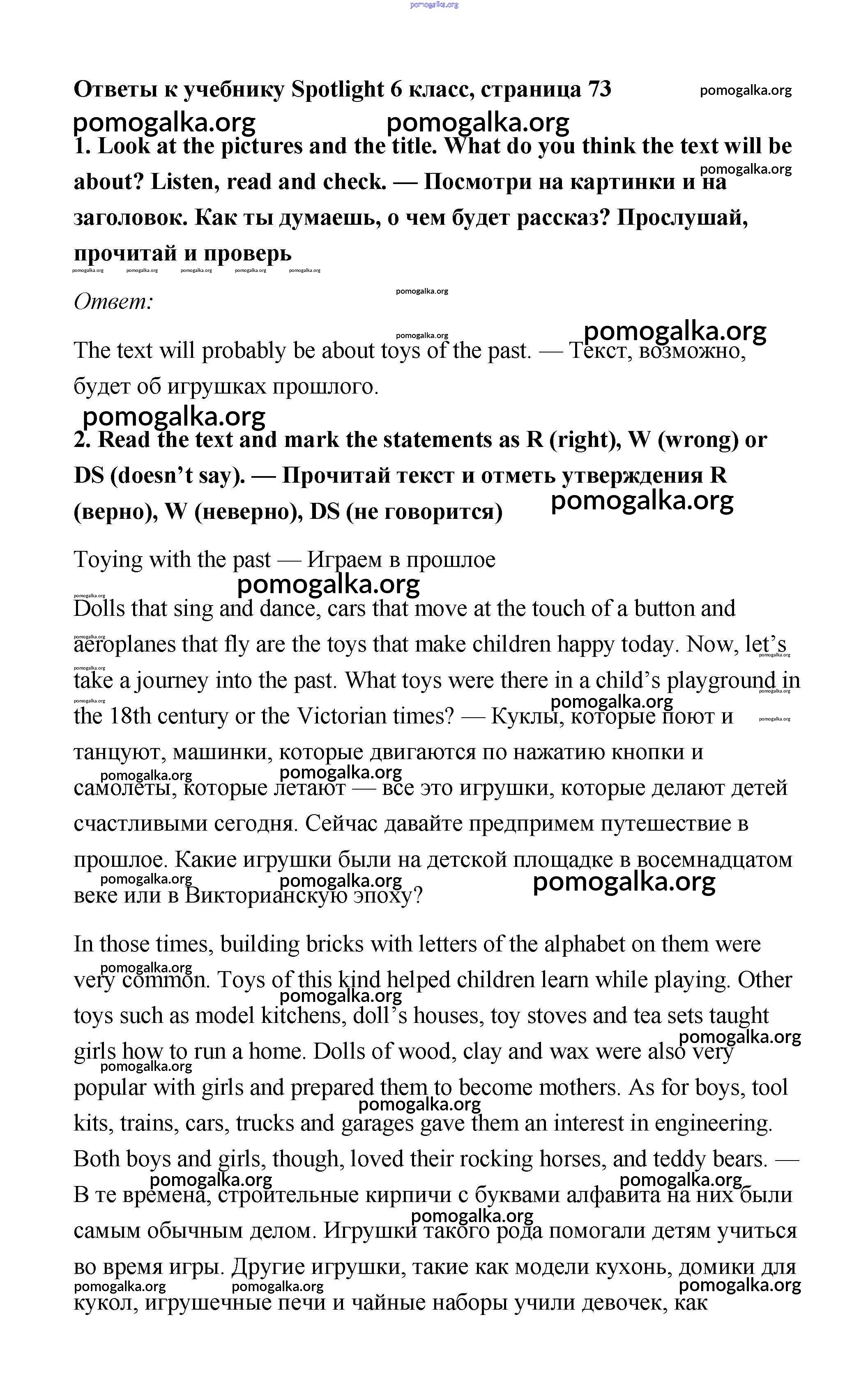 Готовые ответы - Английский язык 6 класс Spotlight Ваулина Е. - module 7. страница 73