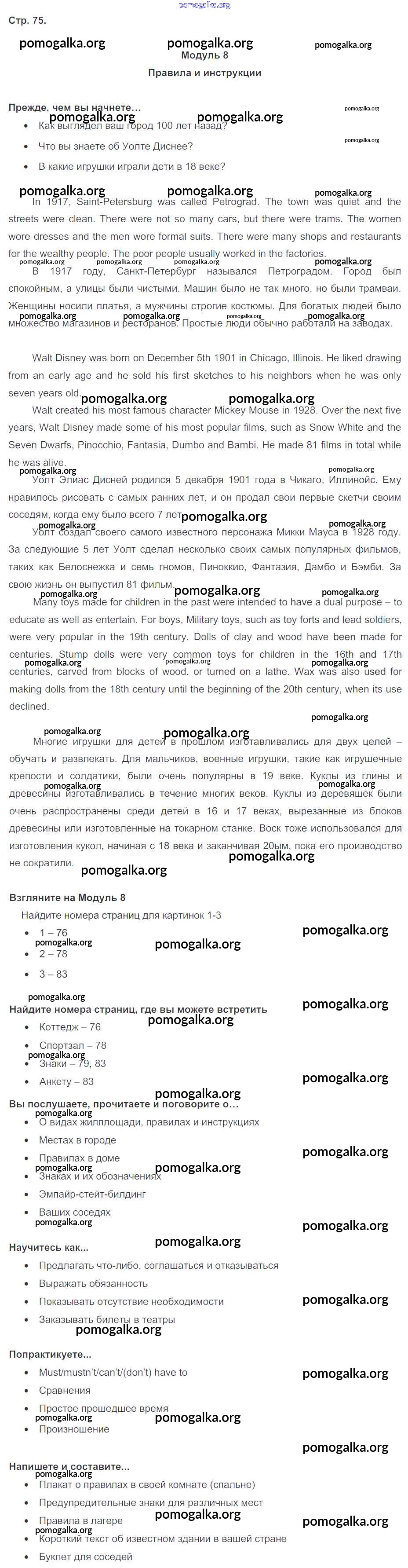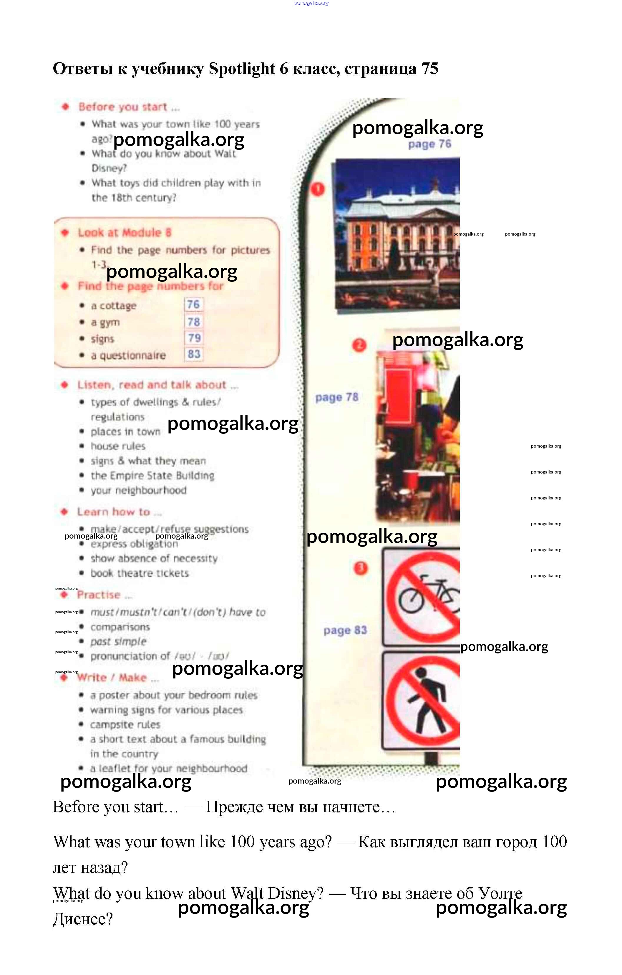 Готовые ответы - Английский язык 6 класс Spotlight Ваулина Е. - module 8. страница 75