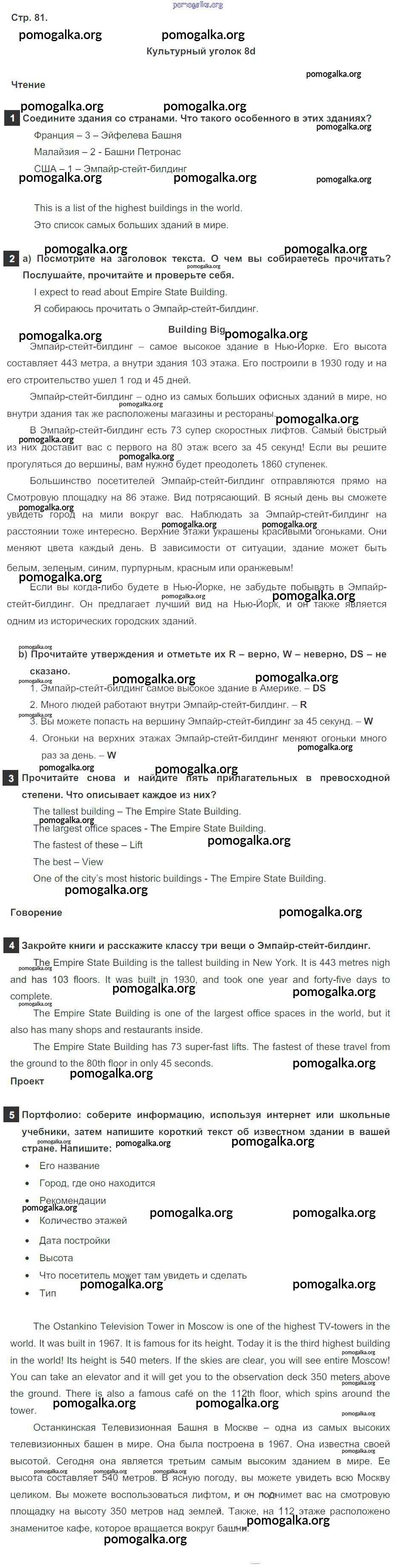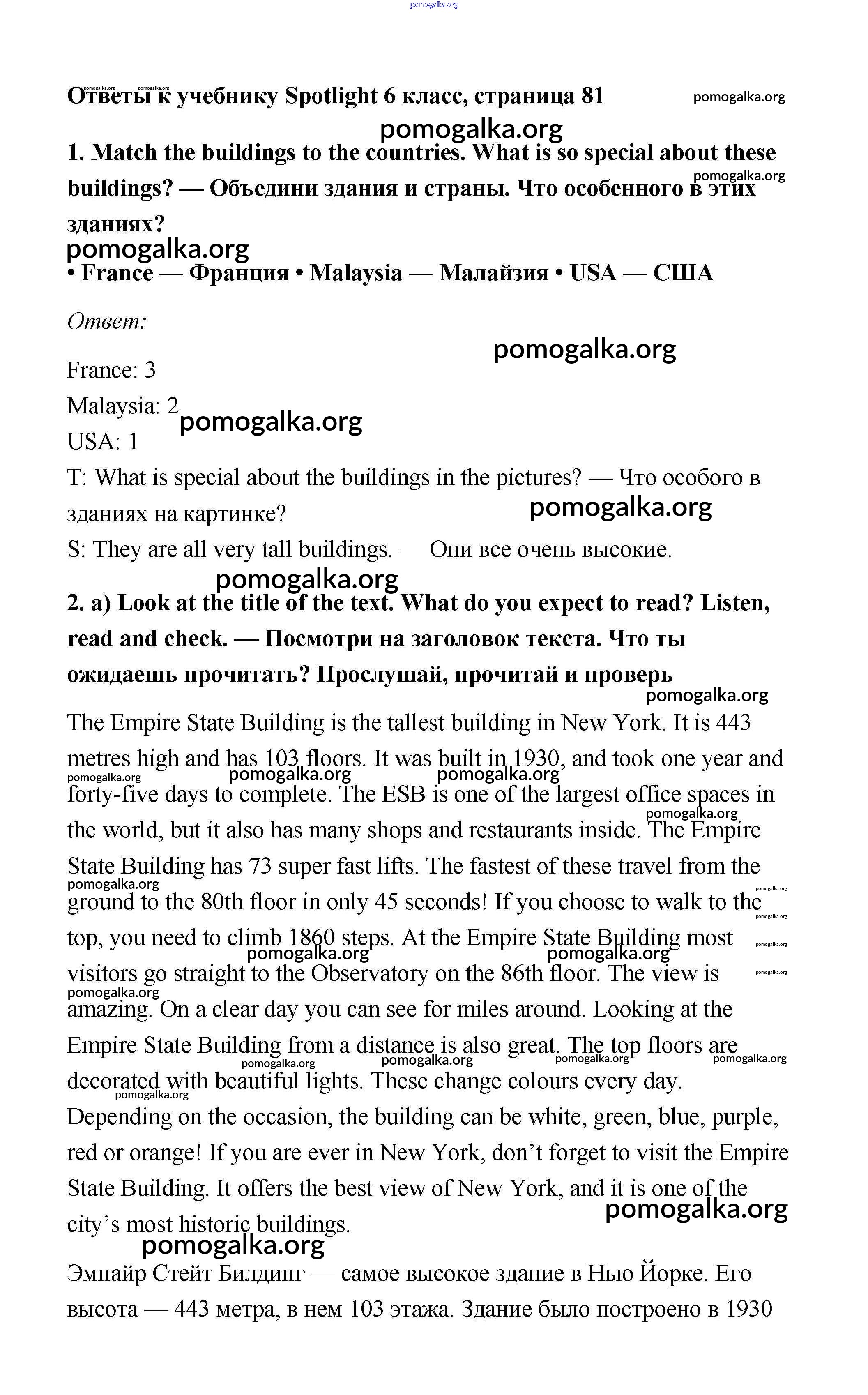 Готовые ответы - Английский язык 6 класс Spotlight Ваулина Е. - module 8. страница 81