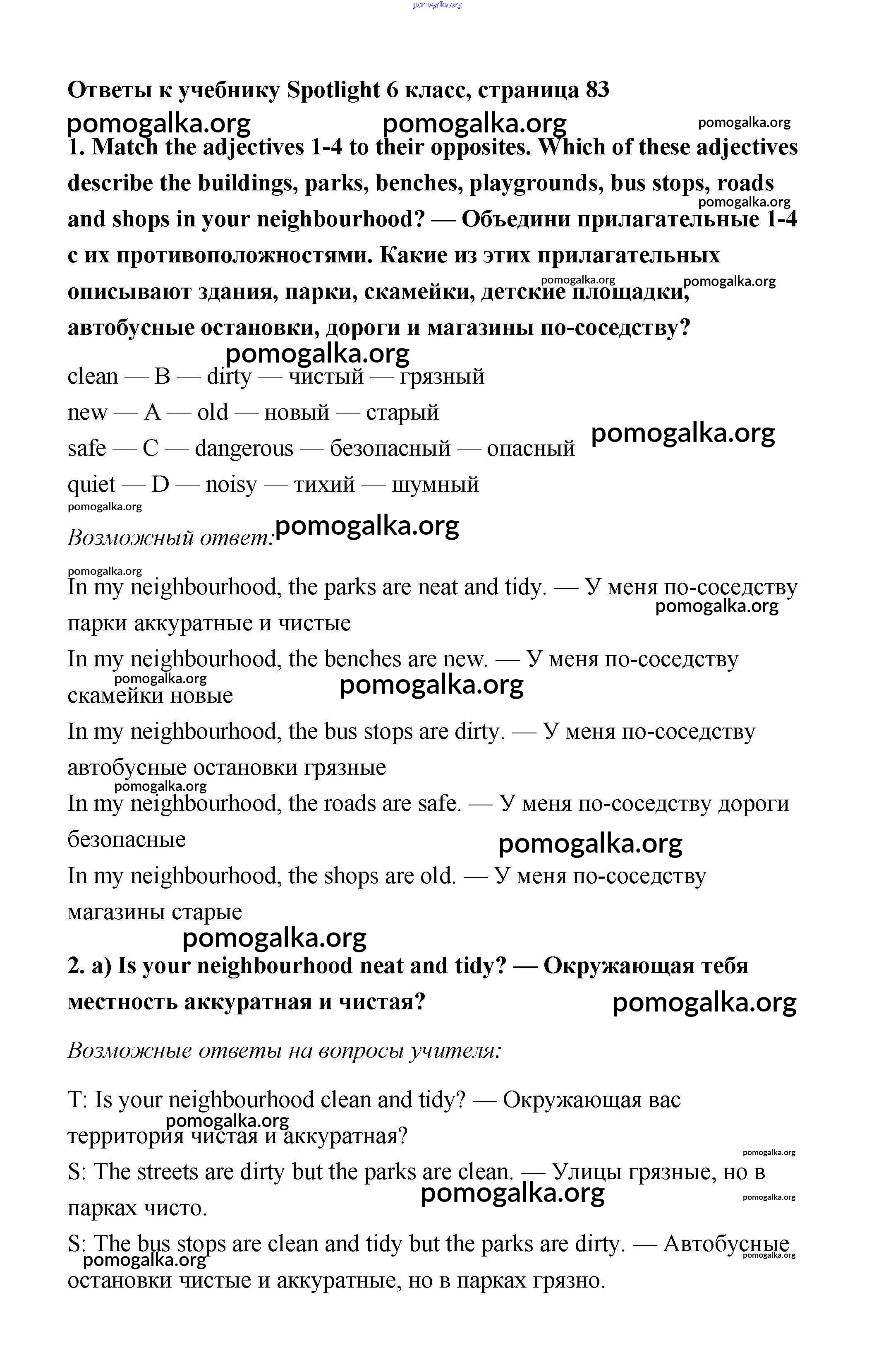 Готовые ответы - Английский язык 6 класс Spotlight Ваулина Е. - module 8. страница 83