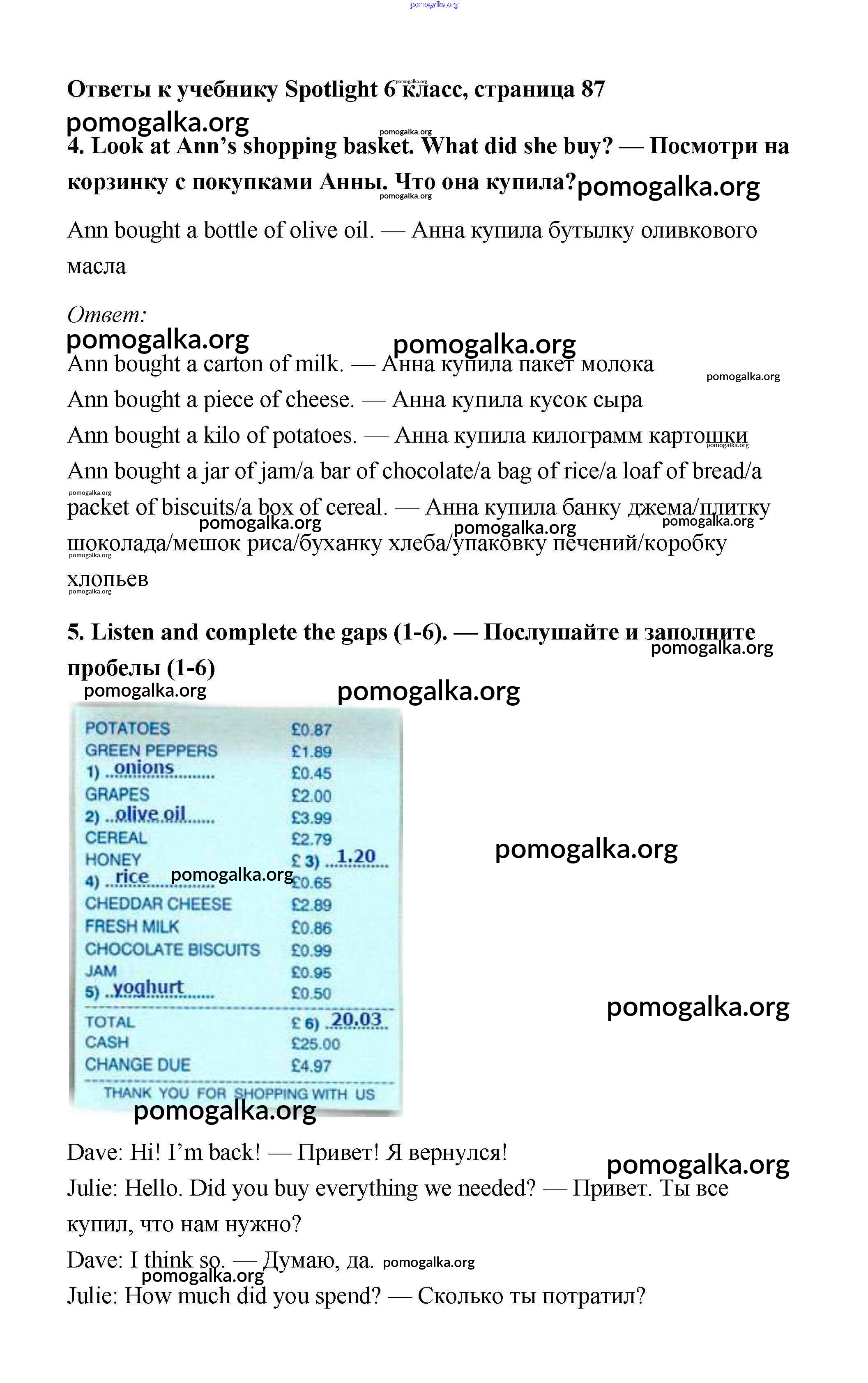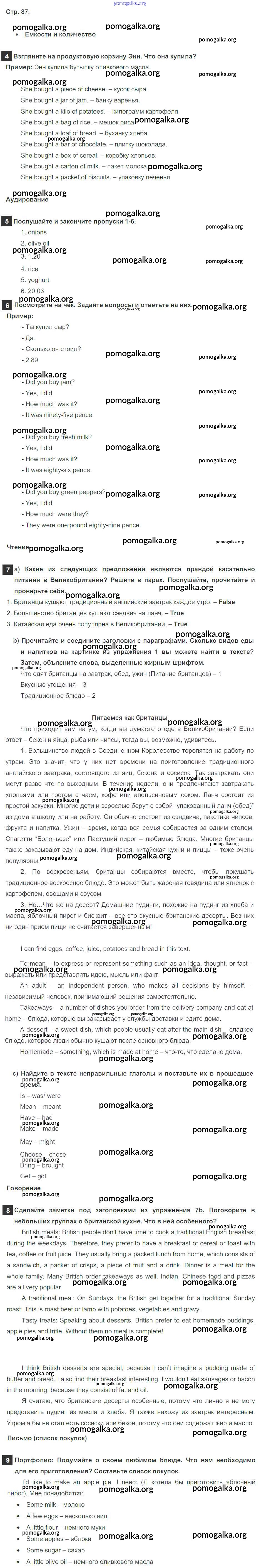 Готовые ответы - Английский язык 6 класс Spotlight Ваулина Е. - module 9. страница 87