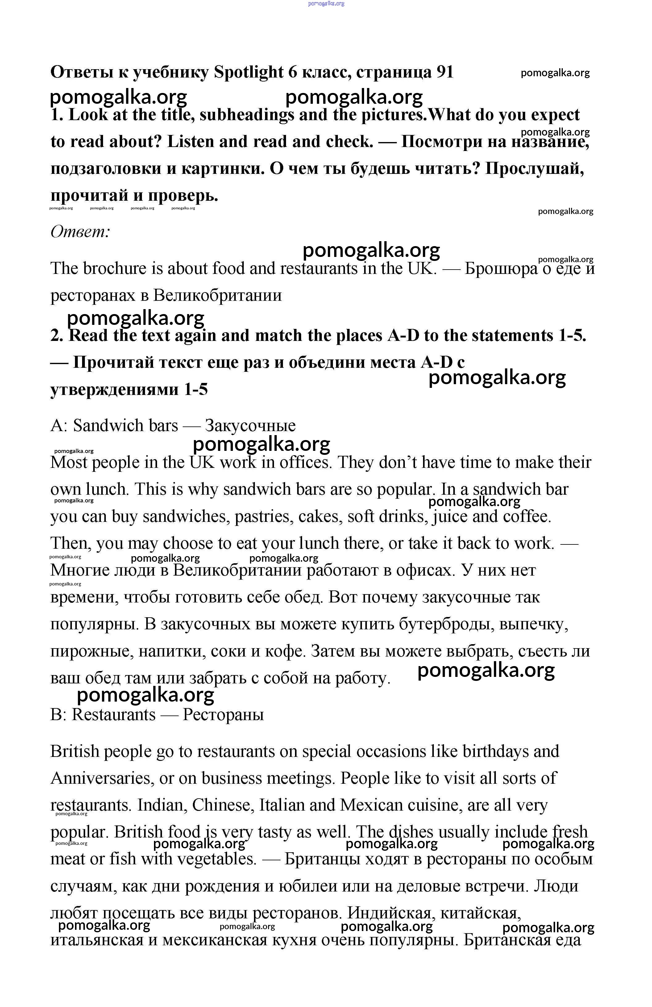 Готовые ответы - Английский язык 6 класс Spotlight Ваулина Е. - module 9. страница 91