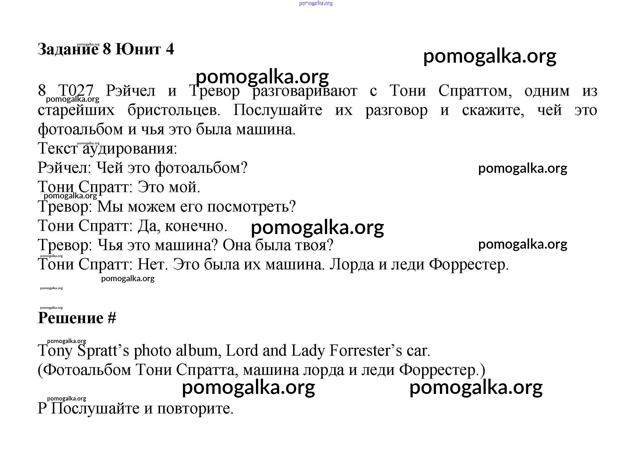 Готовые ответы - Английский язык 6 класс Вербицкая М.В. - unit 4 часть 1 8