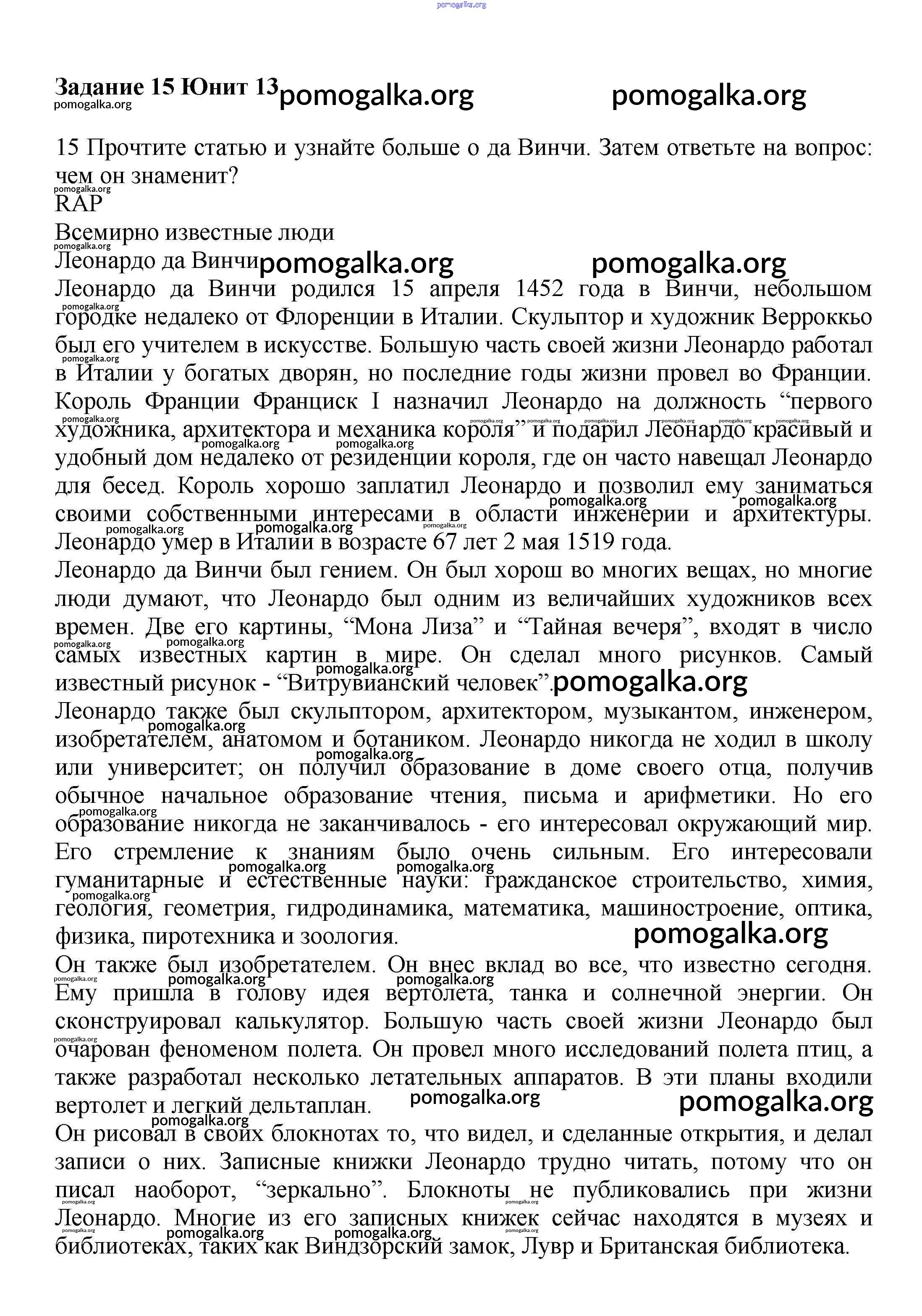 Готовые ответы - Английский язык 6 класс Вербицкая М.В. - unit 13 часть 2 15