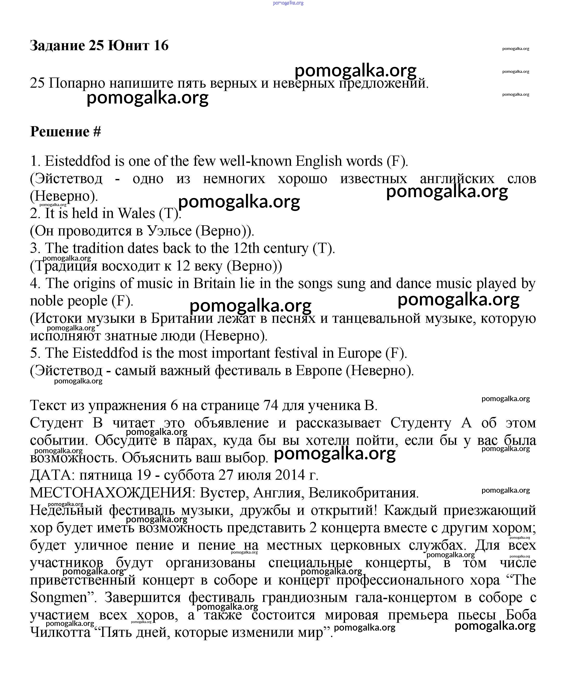 Готовые ответы - Английский язык 6 класс Вербицкая М.В. - unit 16 часть 2 25