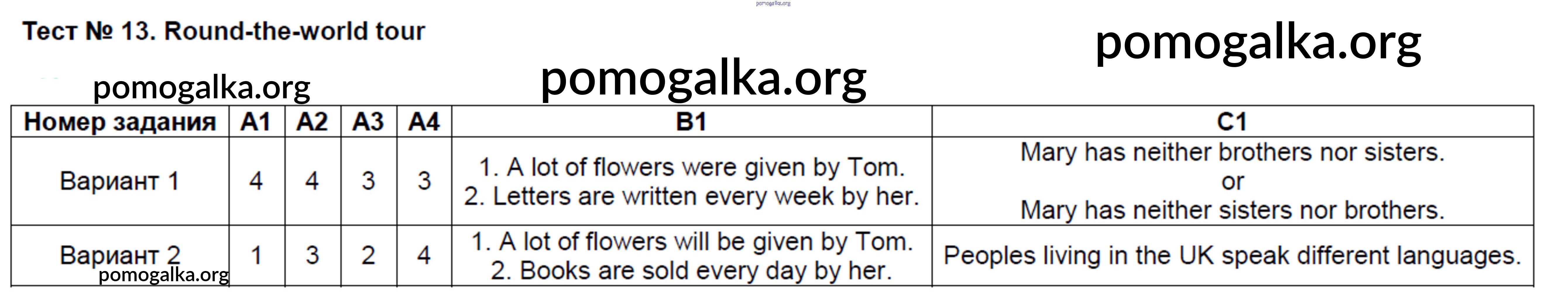 Готовые ответы - Английский язык 7 класс КИМ Артюхова И.В. - тест 13