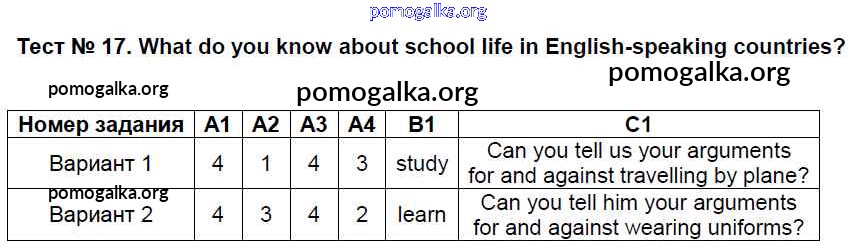 Готовые ответы - Английский язык 7 класс КИМ Артюхова И.В. - тест 17