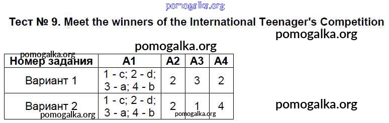 Готовые ответы - Английский язык 7 класс КИМ Артюхова И.В. - тест 9