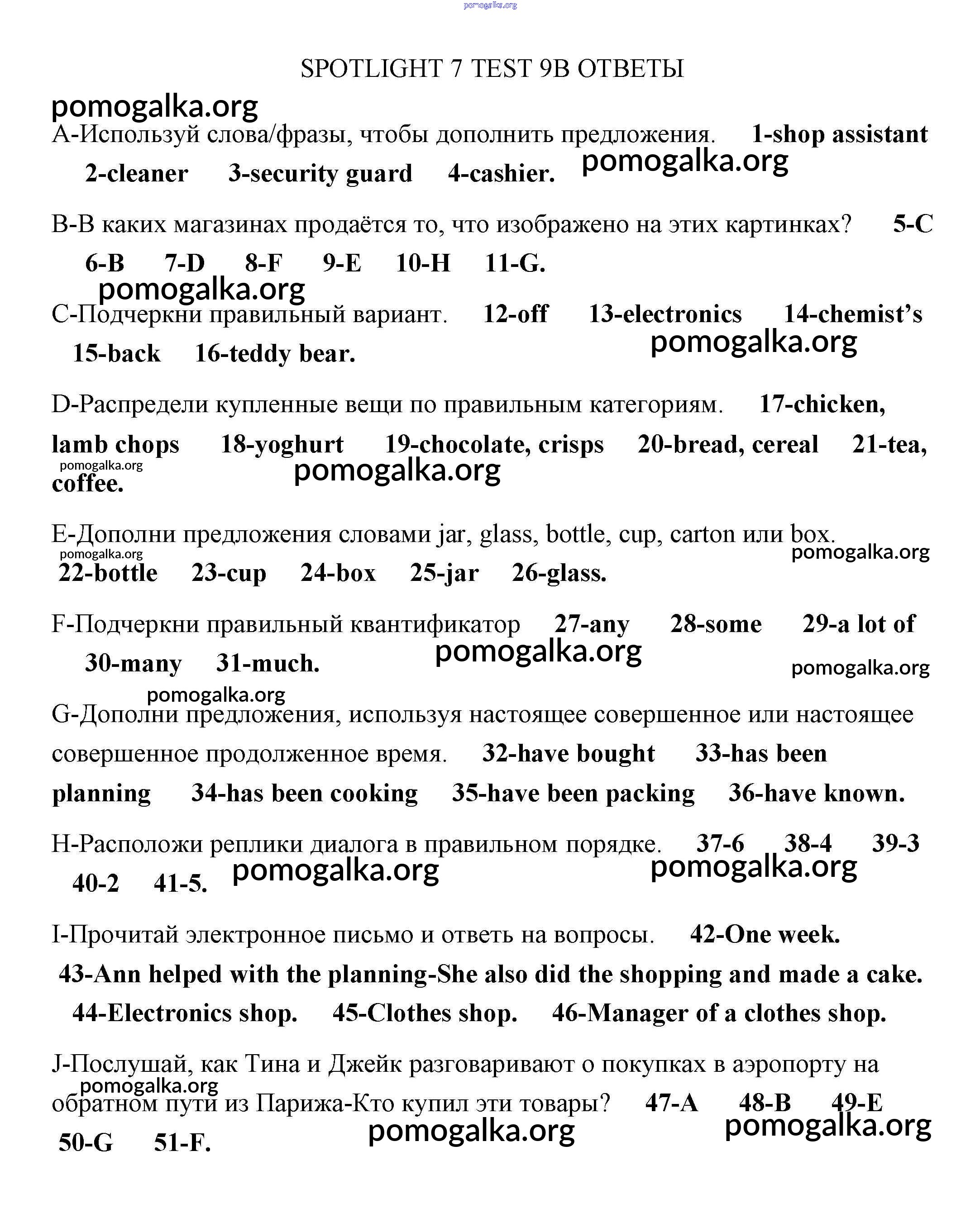 Готовые ответы - Английский язык 7 класс контрольные задания Ваулина Spotlight - тест 9 2