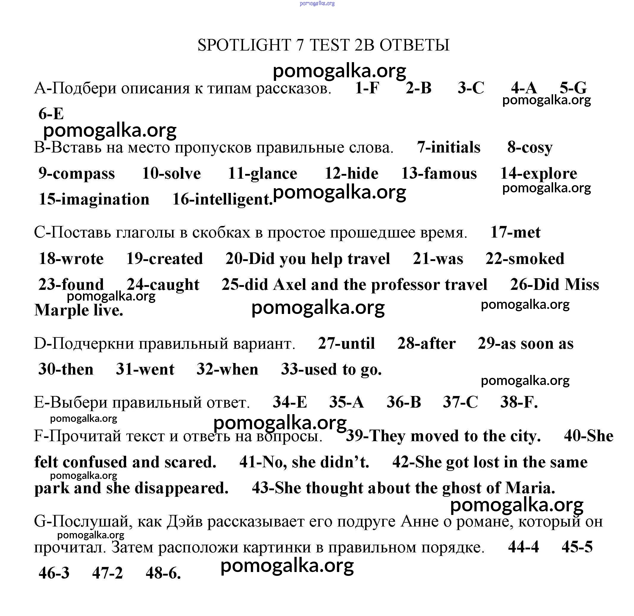 Готовые ответы - Английский язык 7 класс контрольные задания Ваулина Spotlight - тест 2 2