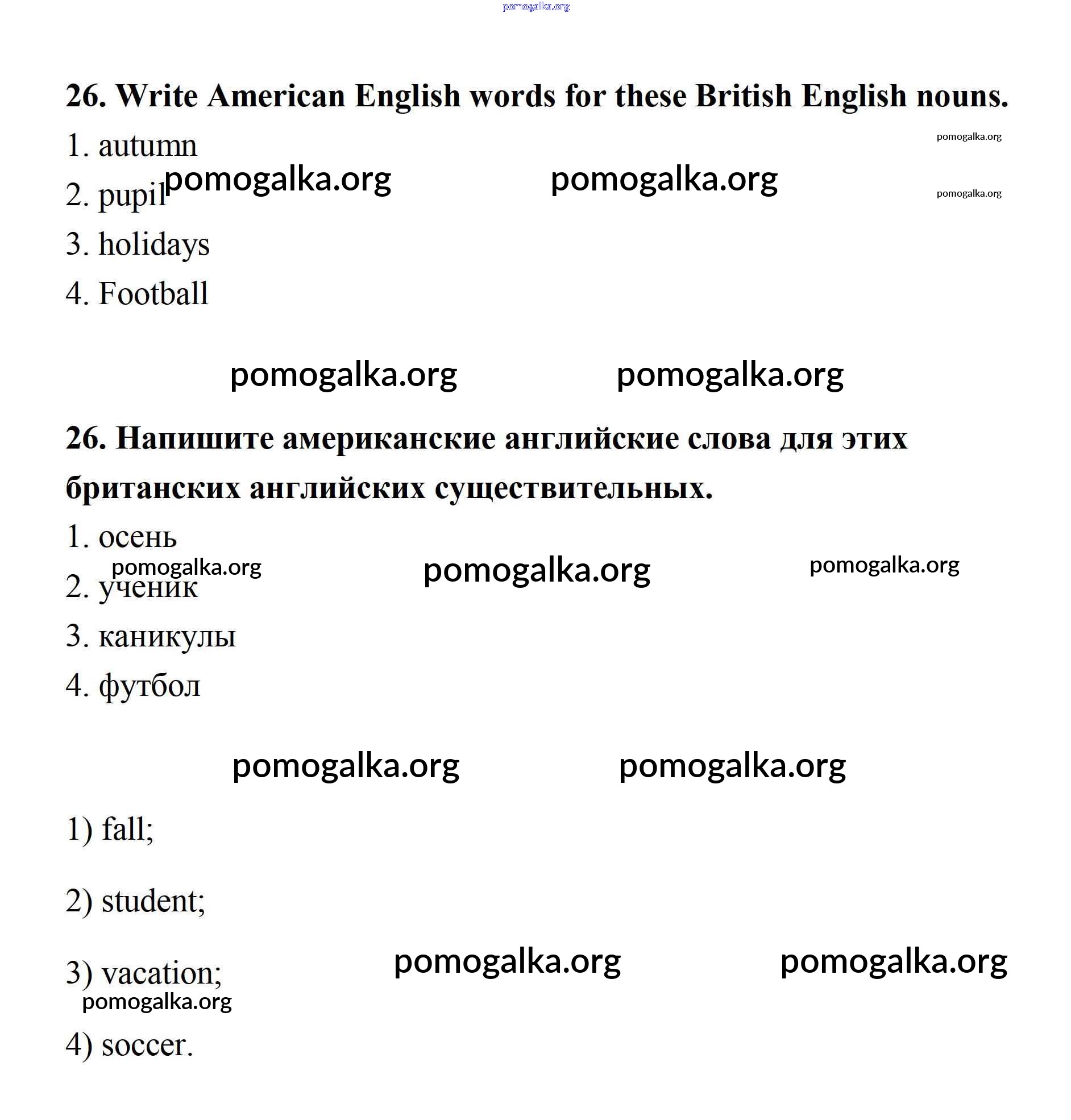 Готовые ответы - Английский язык 7 класс рабочая тетрадь Афанасьева Rainbow - Unit 1 26