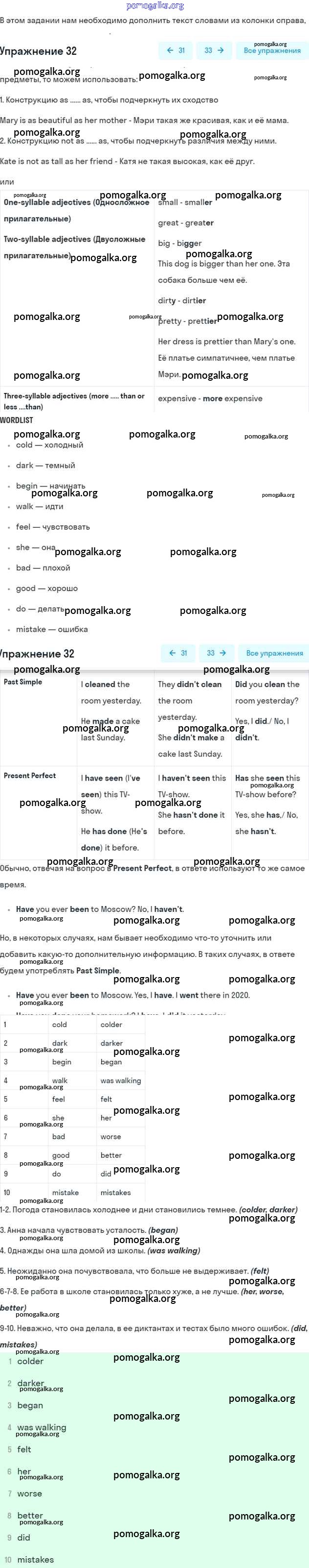 Готовые ответы - Английский язык 7 класс рабочая тетрадь Афанасьева Rainbow - Unit 1 32