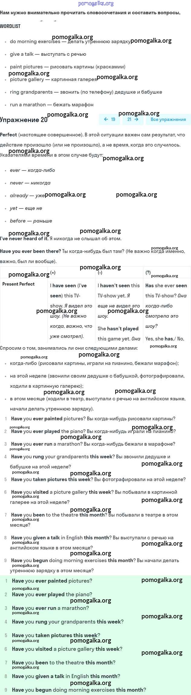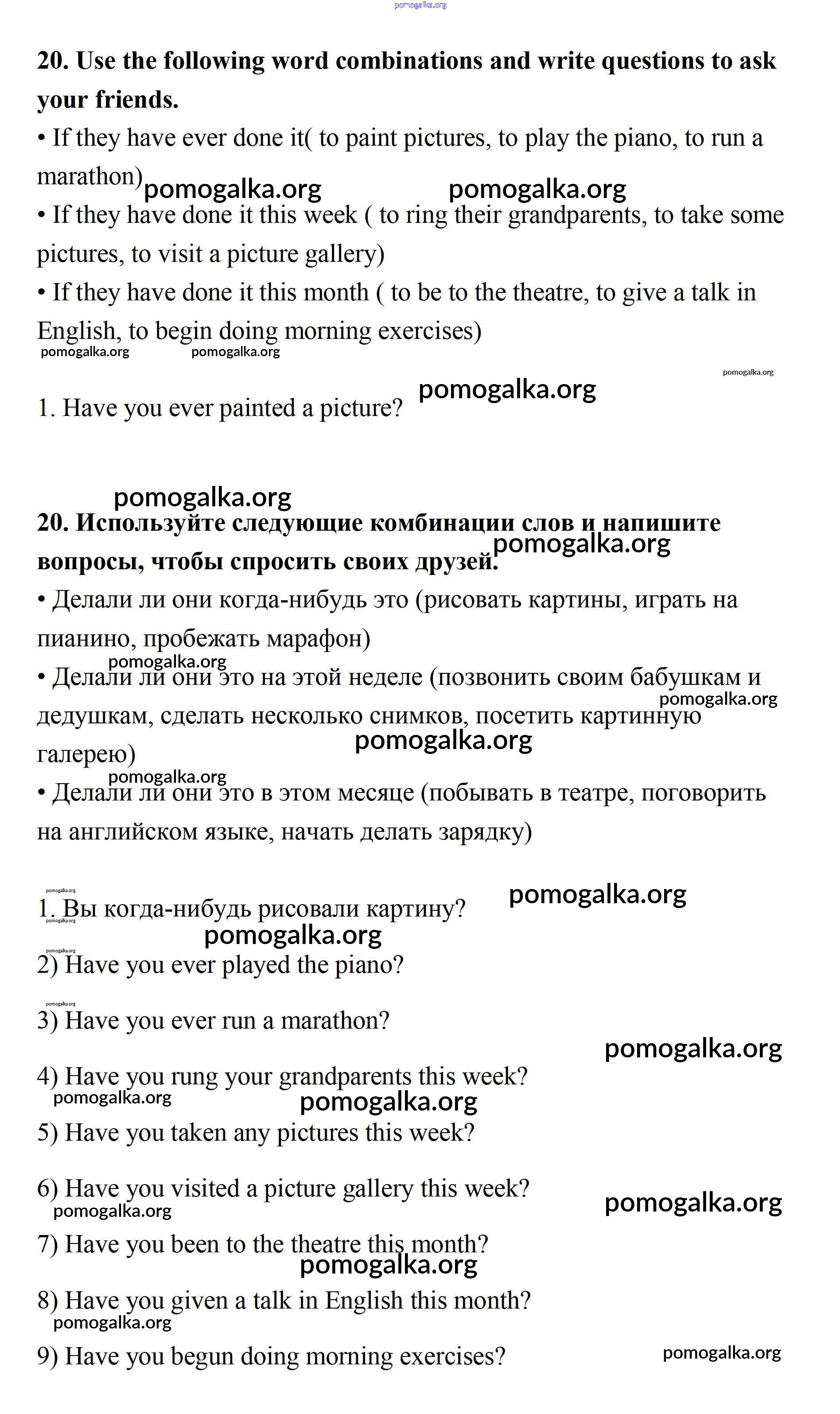 Готовые ответы - Английский язык 7 класс рабочая тетрадь Афанасьева Rainbow - Unit 2 20