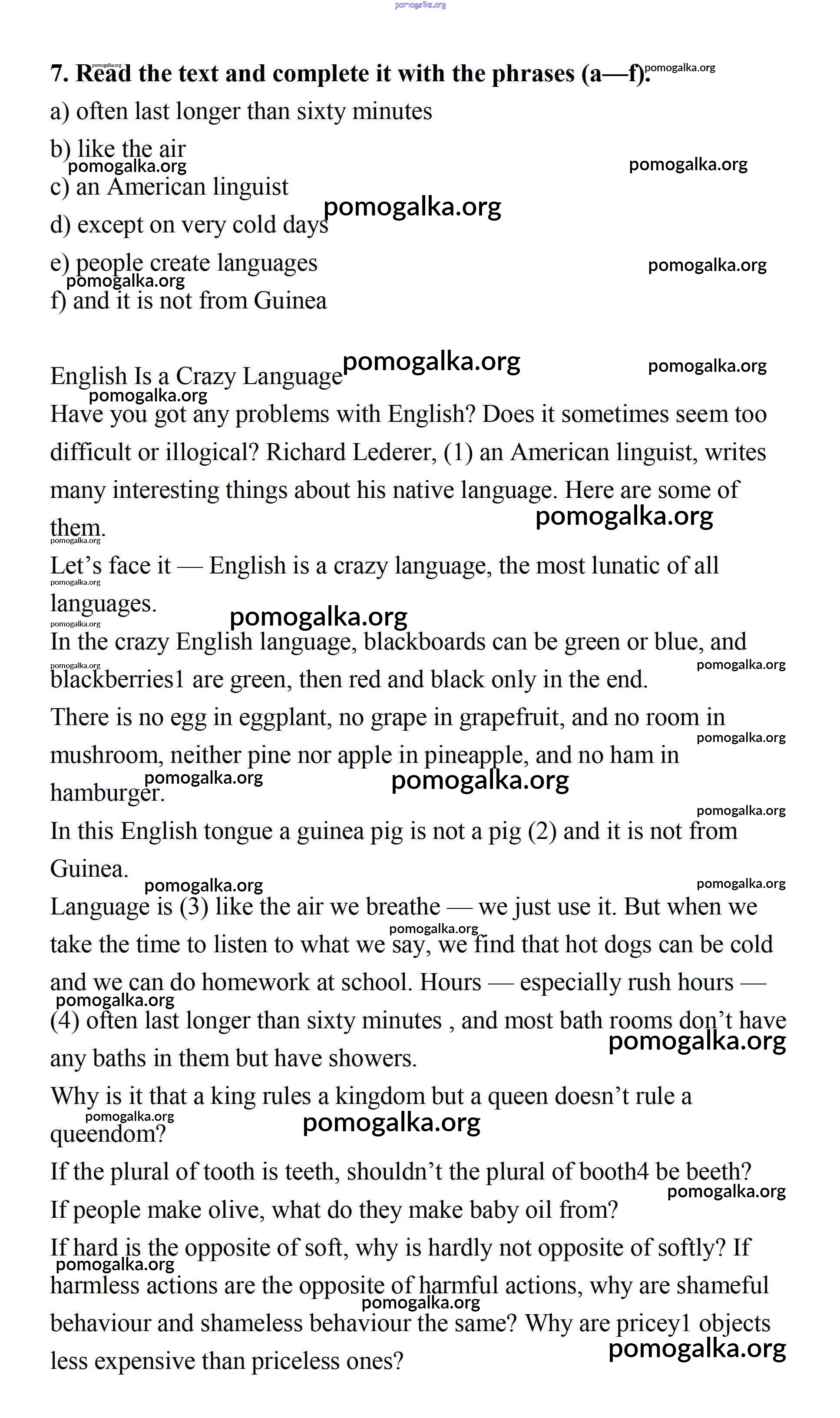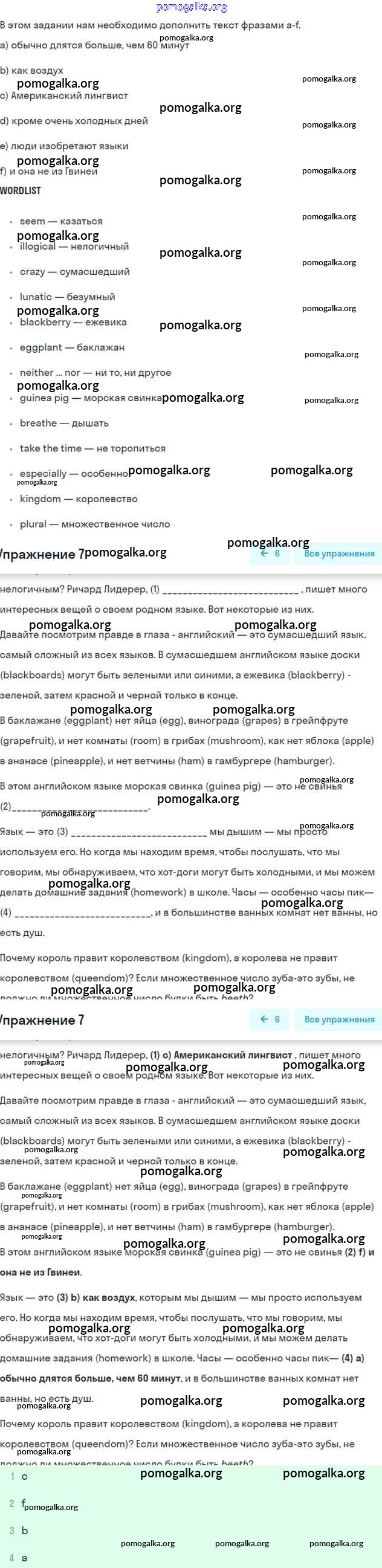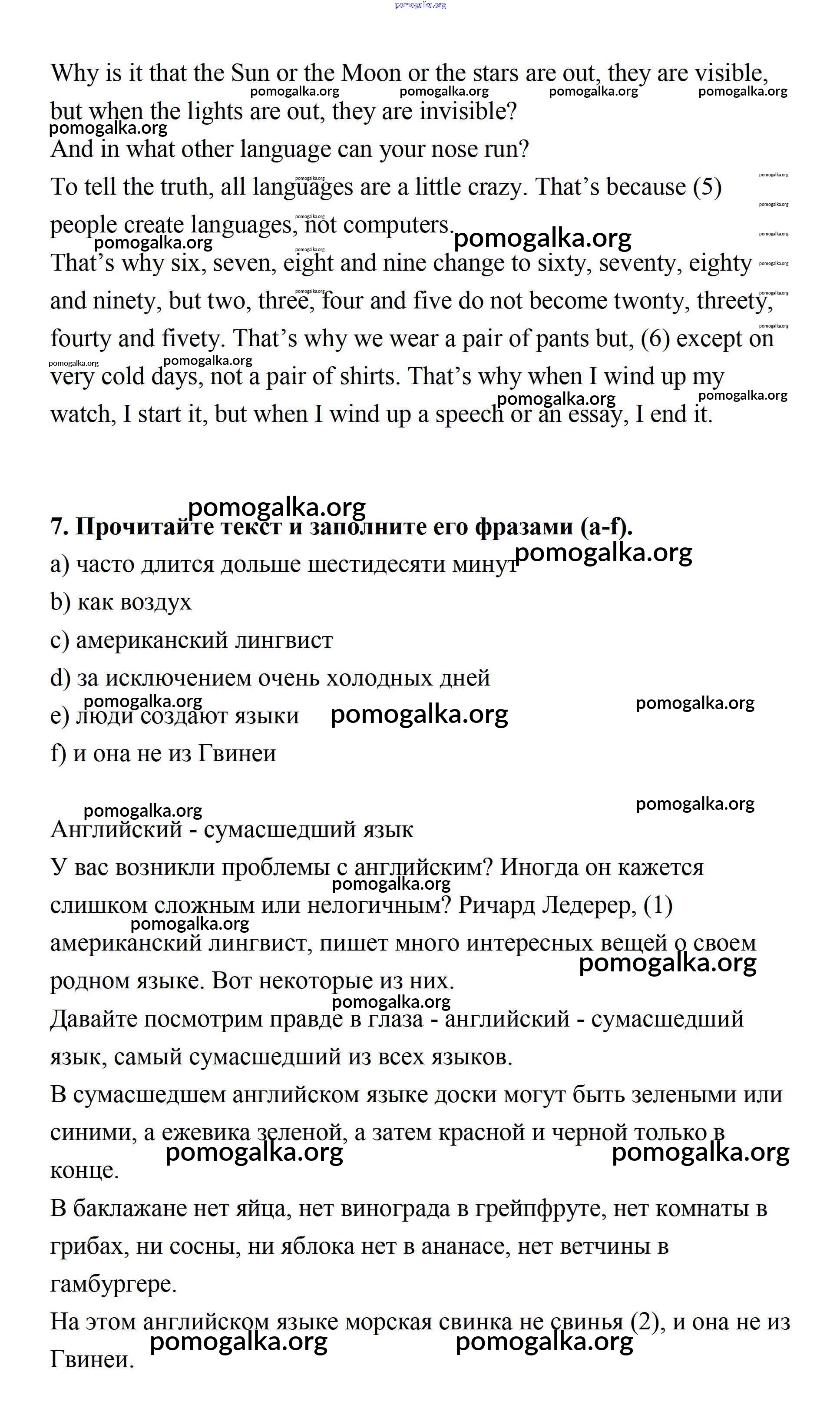 Готовые ответы - Английский язык 7 класс рабочая тетрадь Афанасьева Rainbow - Unit 2 7