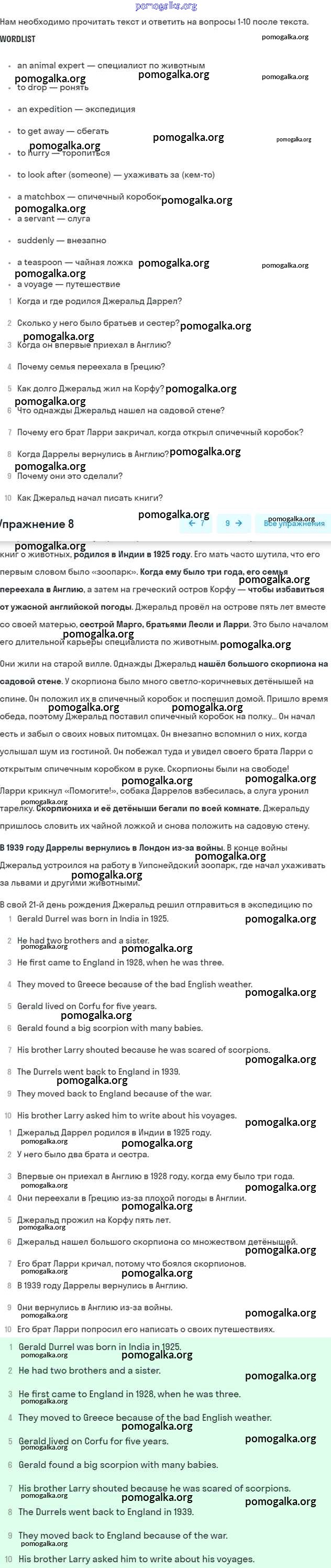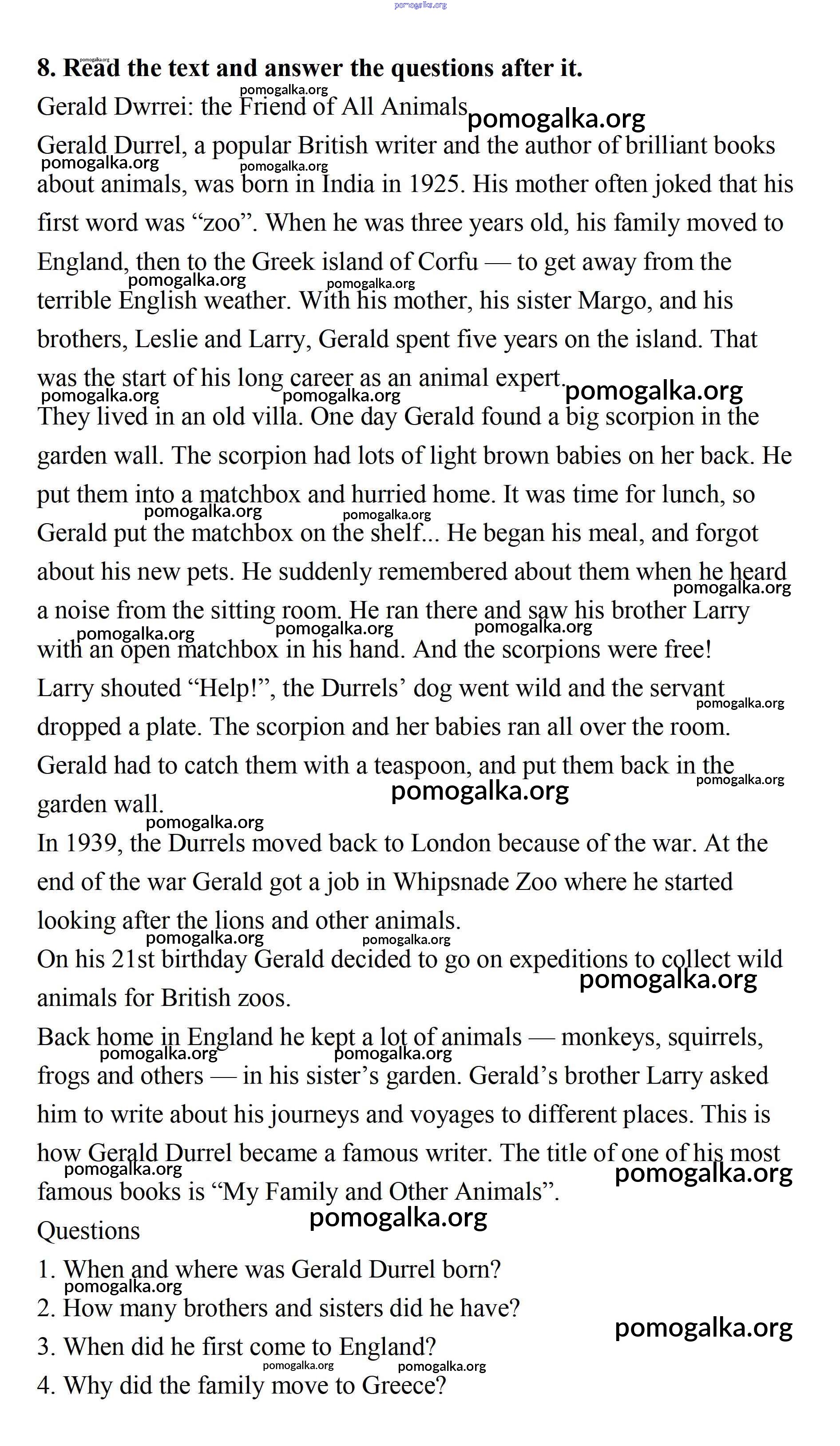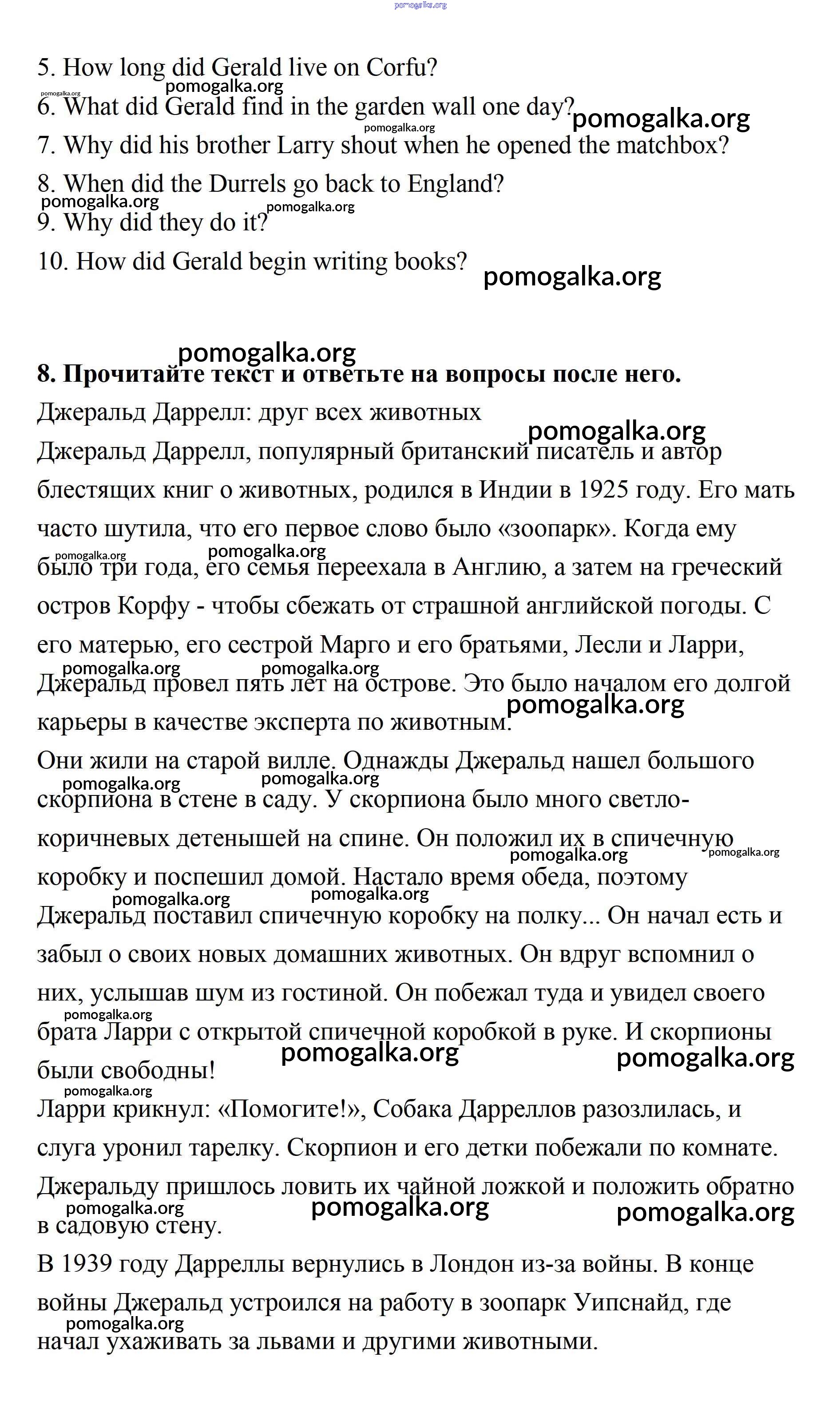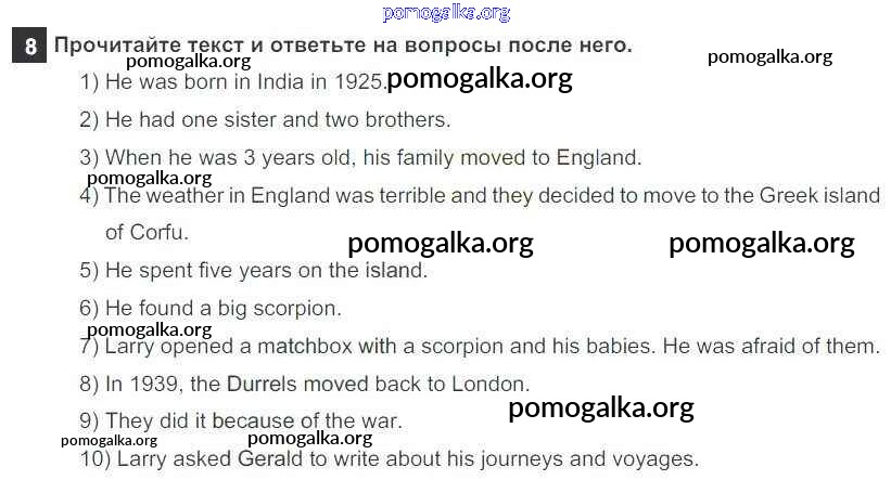 Готовые ответы - Английский язык 7 класс рабочая тетрадь Афанасьева Rainbow - Unit 4 8