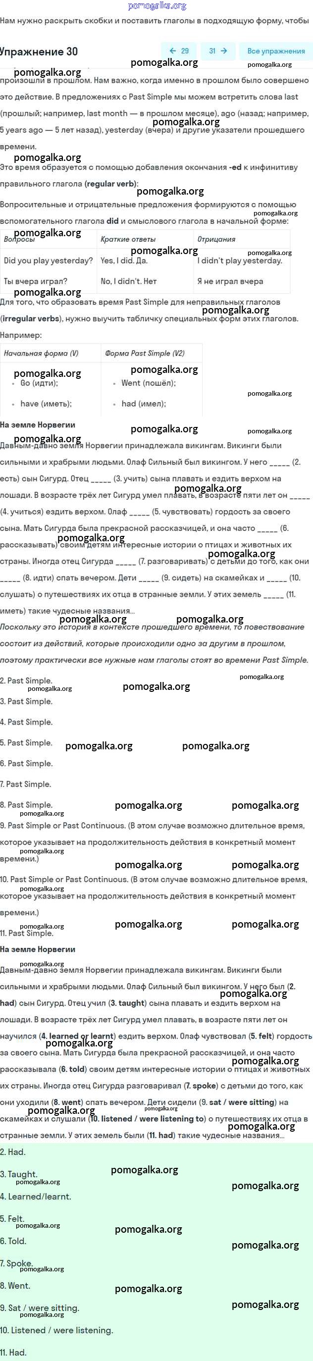 Готовые ответы - Английский язык 7 класс рабочая тетрадь Афанасьева Rainbow - Unit 6 30