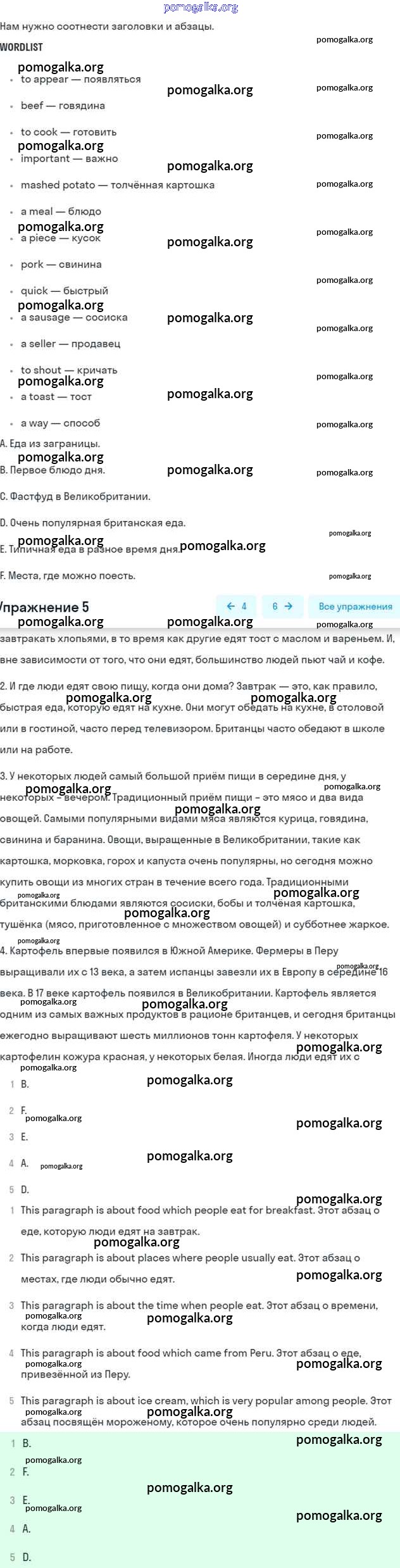Готовые ответы - Английский язык 7 класс рабочая тетрадь Афанасьева Rainbow - Unit 6 5