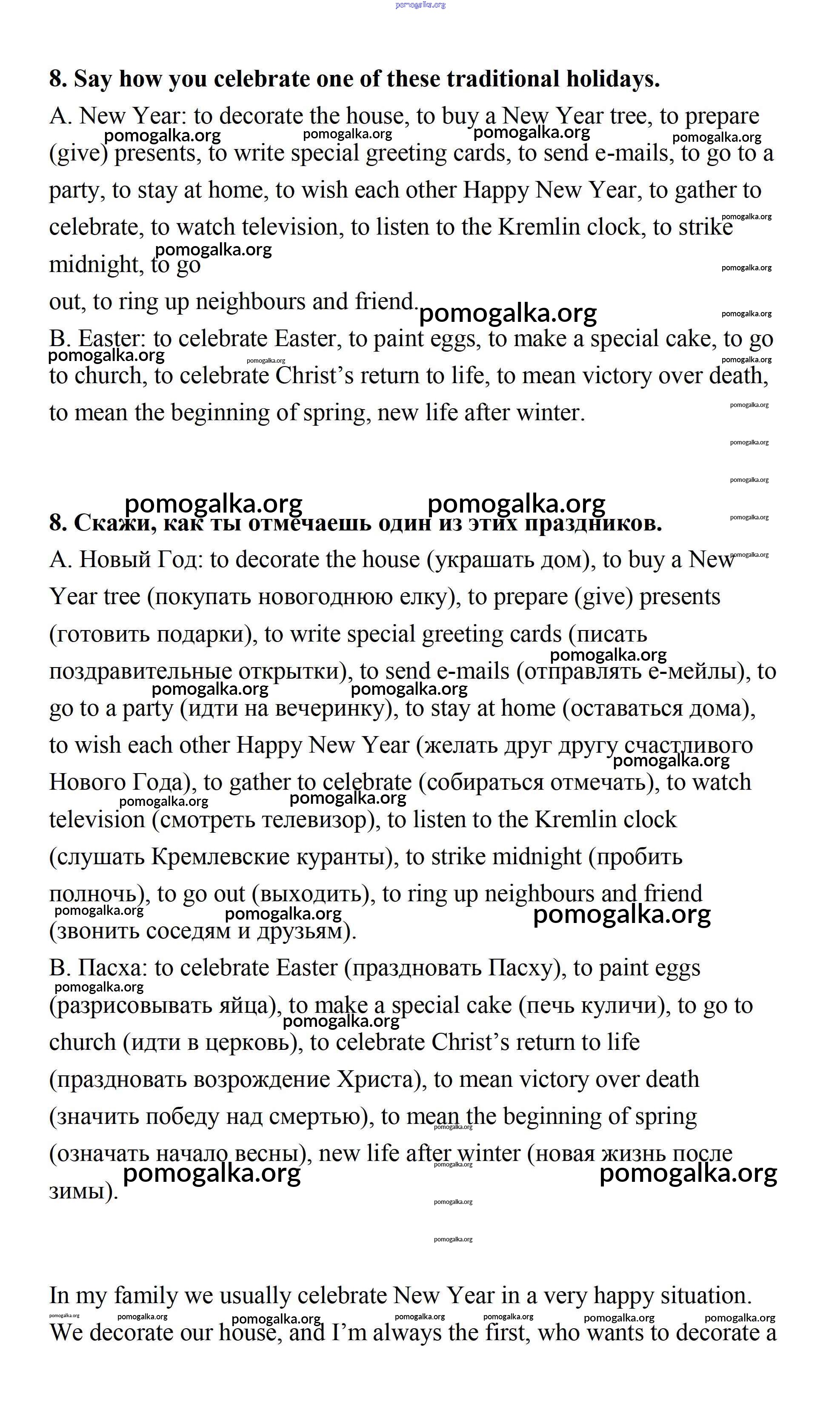 Готовые ответы - Английский язык 7 класс рабочая тетрадь Афанасьева Михеева (Новый курс) - unit 4 часть 1 8