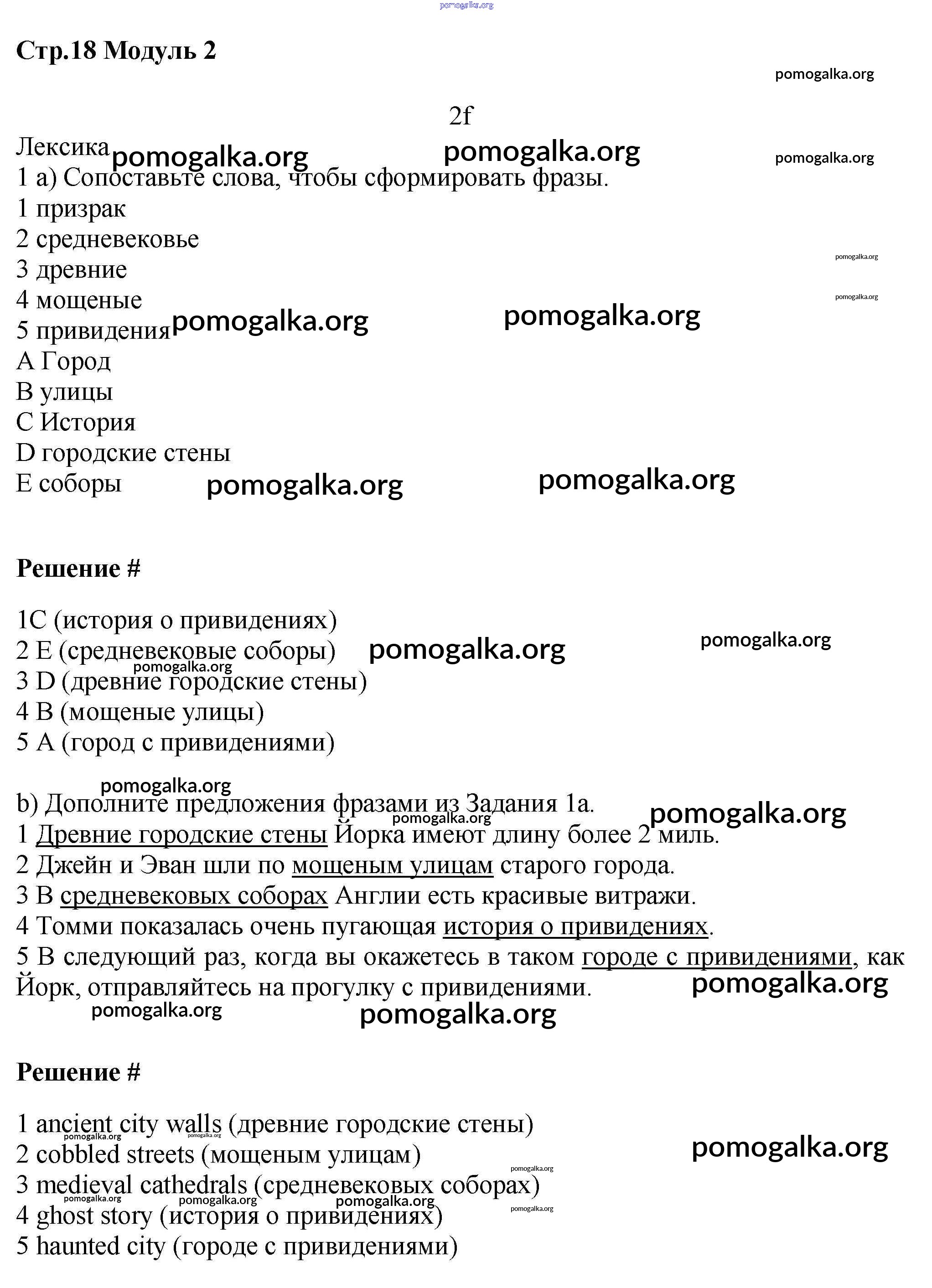 Готовые ответы - Английский язык 7 класс рабочая тетрадь Starlight Баранова К.М. - module 2 18