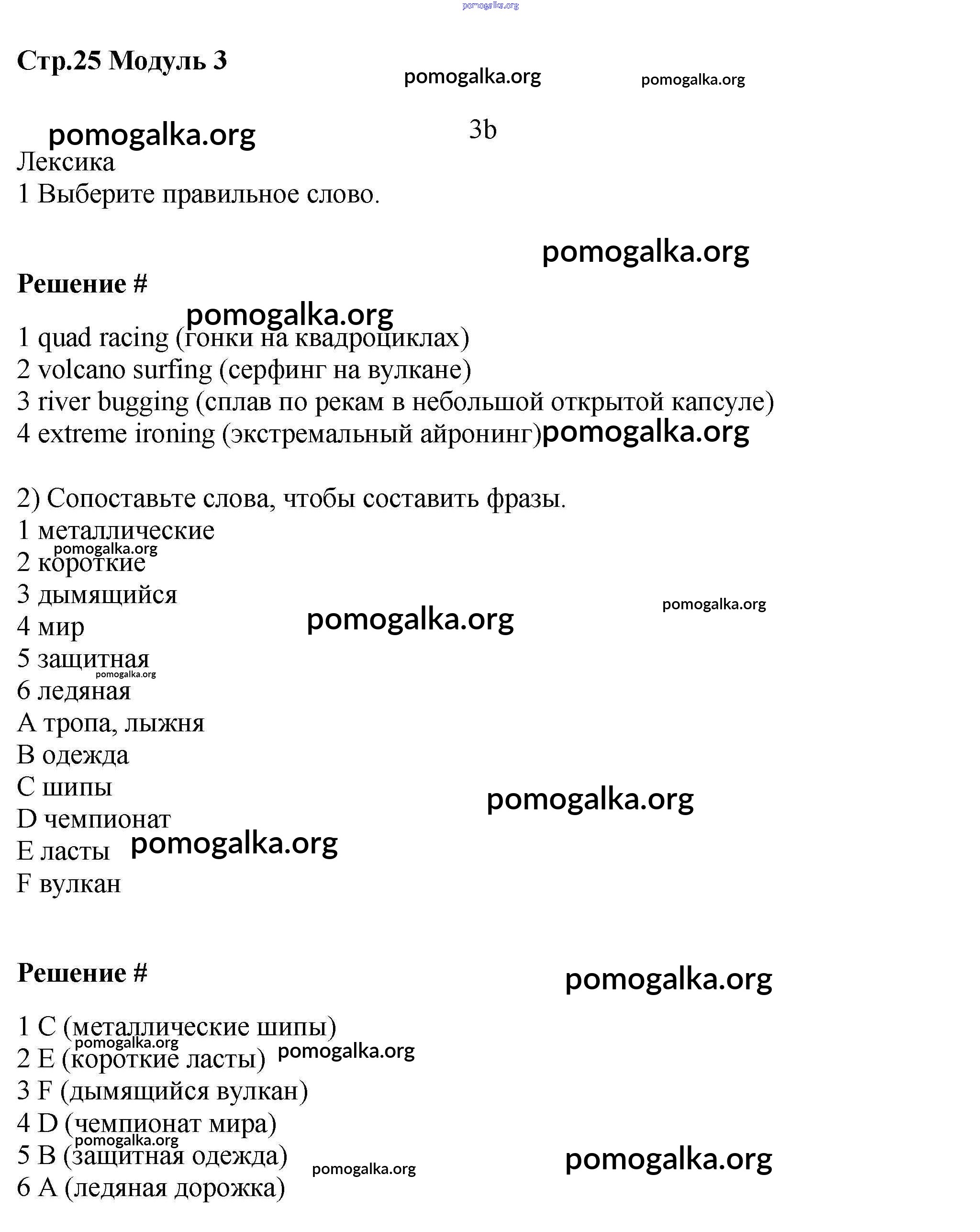 Готовые ответы - Английский язык 7 класс рабочая тетрадь Starlight Баранова К.М. - module 3 25
