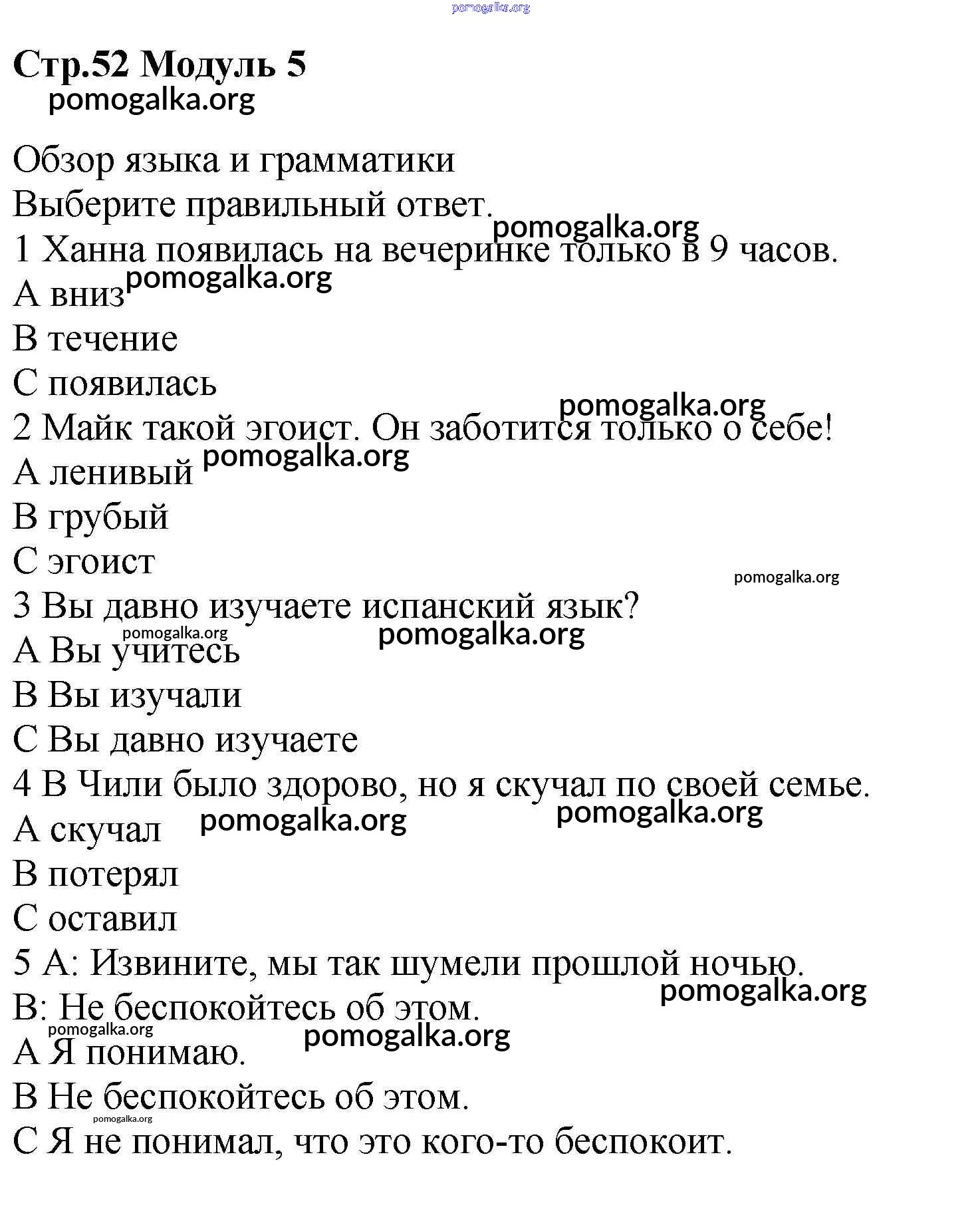 Готовые ответы - Английский язык 7 класс рабочая тетрадь Starlight Баранова К.М. - module 5 52