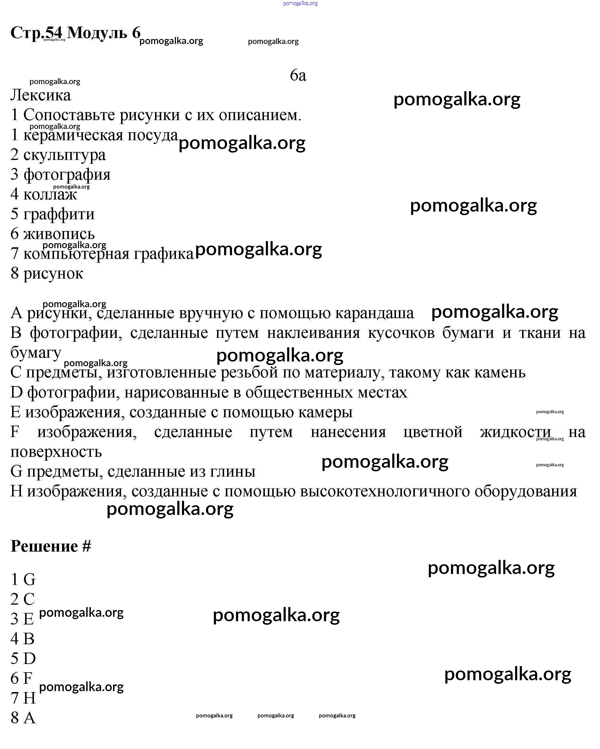 Готовые ответы - Английский язык 7 класс рабочая тетрадь Starlight Баранова К.М. - module 6 54